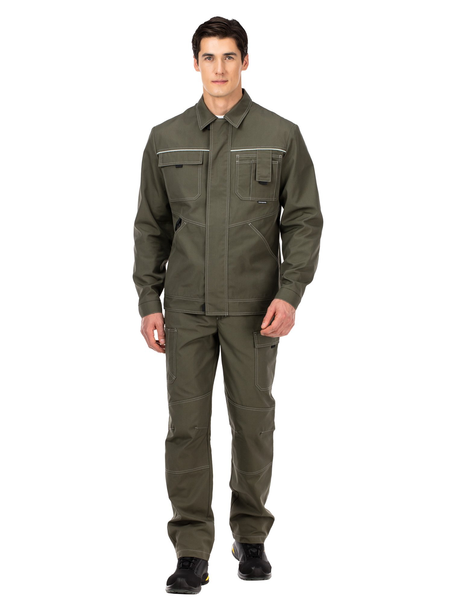 Костюм, из легкой прочной на разрыв ткани Рип-стоп с каркасом из армированных нитей и высоким содержанием хлопка, состоит из куртки и брюк.