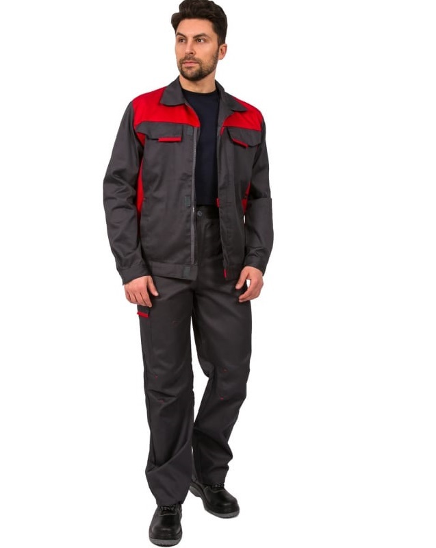 Костюм состоит из куртки и брюк.