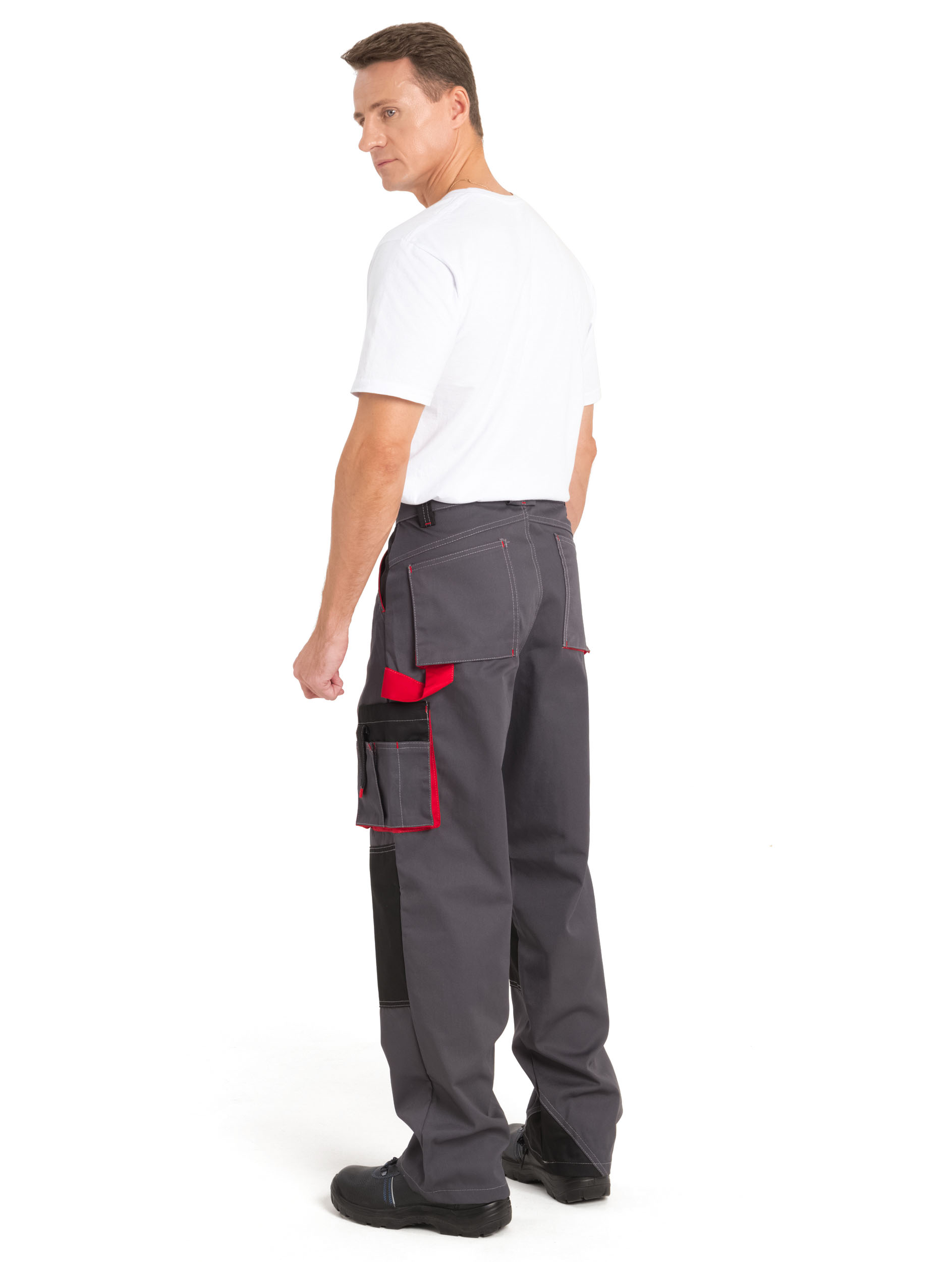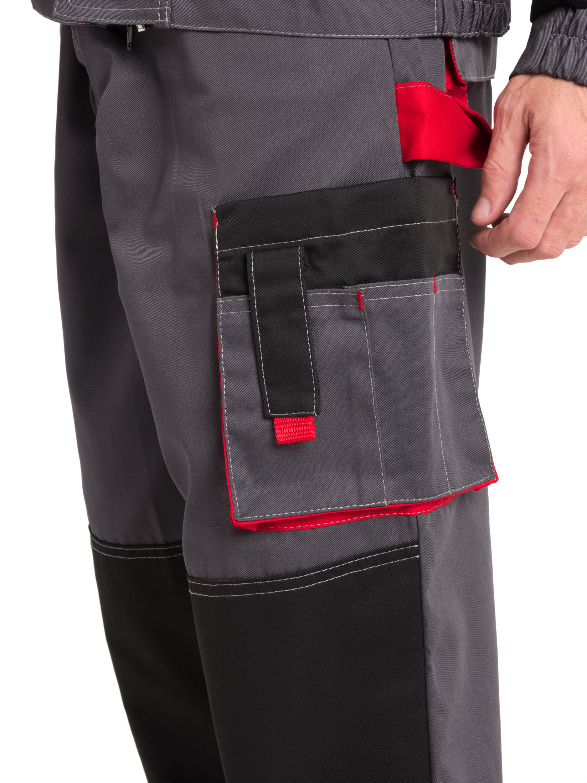 Куртка укороченная, с притачным поясом на резинке, застежка на молнию и контрастный ветрозащитный клапан на липучках. Много функциональных карманов: нагрудные – с карманом для телефона и ручек; нижние боковые. Рукава на манжетах. Световозвращающая отделка обеспечивает хорошую видимость работника. Брюки с центральной застежкой на молнию. Пояс со шлевками. Много функциональных карманов: задние – с отлетным низом; боковые карманы - с карманом для телефона и инструментов. Петля для инструментов. Усилительные объемные наколенники предохраняют от протирания.