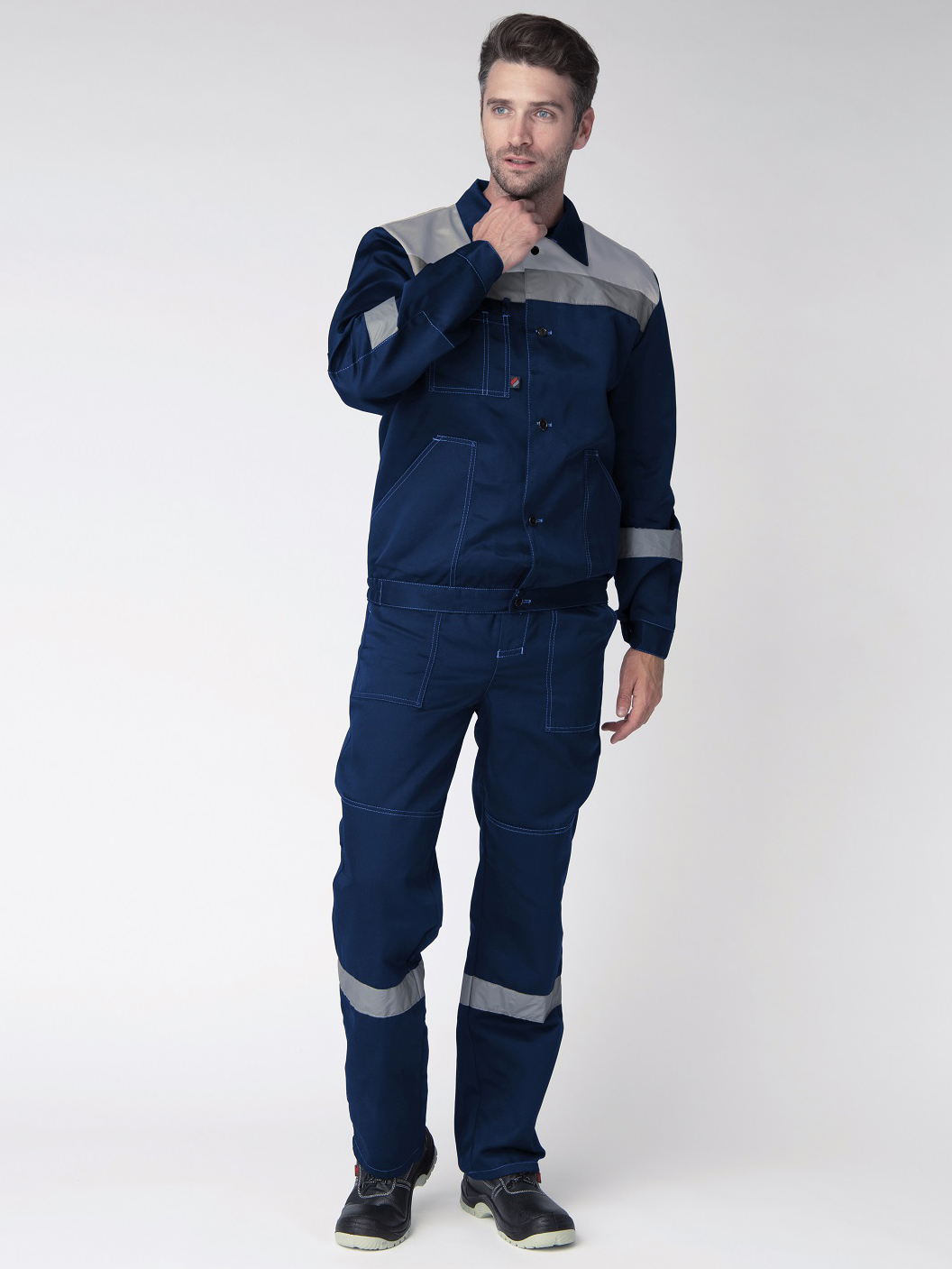 Хит продаж! Рабочий костюм «Легион-1 СОП», состоящий из двух предметов (рабочая мужская куртка на пуговицах и рабочие брюки), оснащен широкими светоотражающими полосами 50 мм для безопасной работы в местах с плохим освещением. Благодаря усилению плечевого и шагового шва, а также усилительным накладкам в области колен и локтей униформа отличается повышенной надежностью, износостойкостью и длительным периодом эксплуатации. Костюм рабочий изготовлен по ГОСТ, с изнаночной стороны брюк и куртки расположены этикетки для указания ФИО. Летняя рабочая куртка прямого кроя с регулировкой по объему на поясе не стесняет движения, очень удобна в работе. Для хранения записей предусмотрен нагрудный карман с лентой для фиксации бейджа и отделением под ручку. Рабочие брюки с карманами застегиваются на пуговицы, а также могут фиксироваться ремнем для дополнительного удобства.