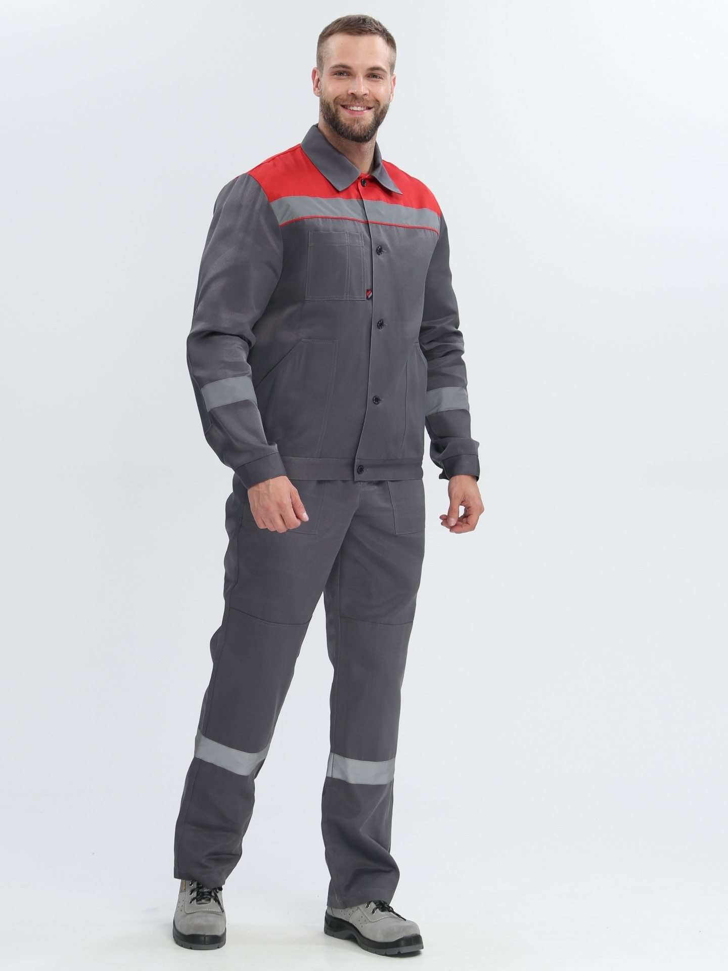 Усиленные Накладки: Костюм оснащён усиленными накладками на коленях и локтях, что предотвращает быстрый износ и обеспечивает дополнительную защиту при работе в условиях повышенной физической нагрузки.