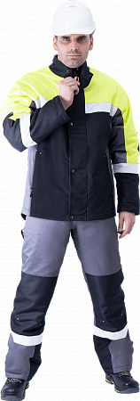Костюм состоит из куртки и полукомбинезона. Пилостойкий трикотаж в семь слоев в куртке