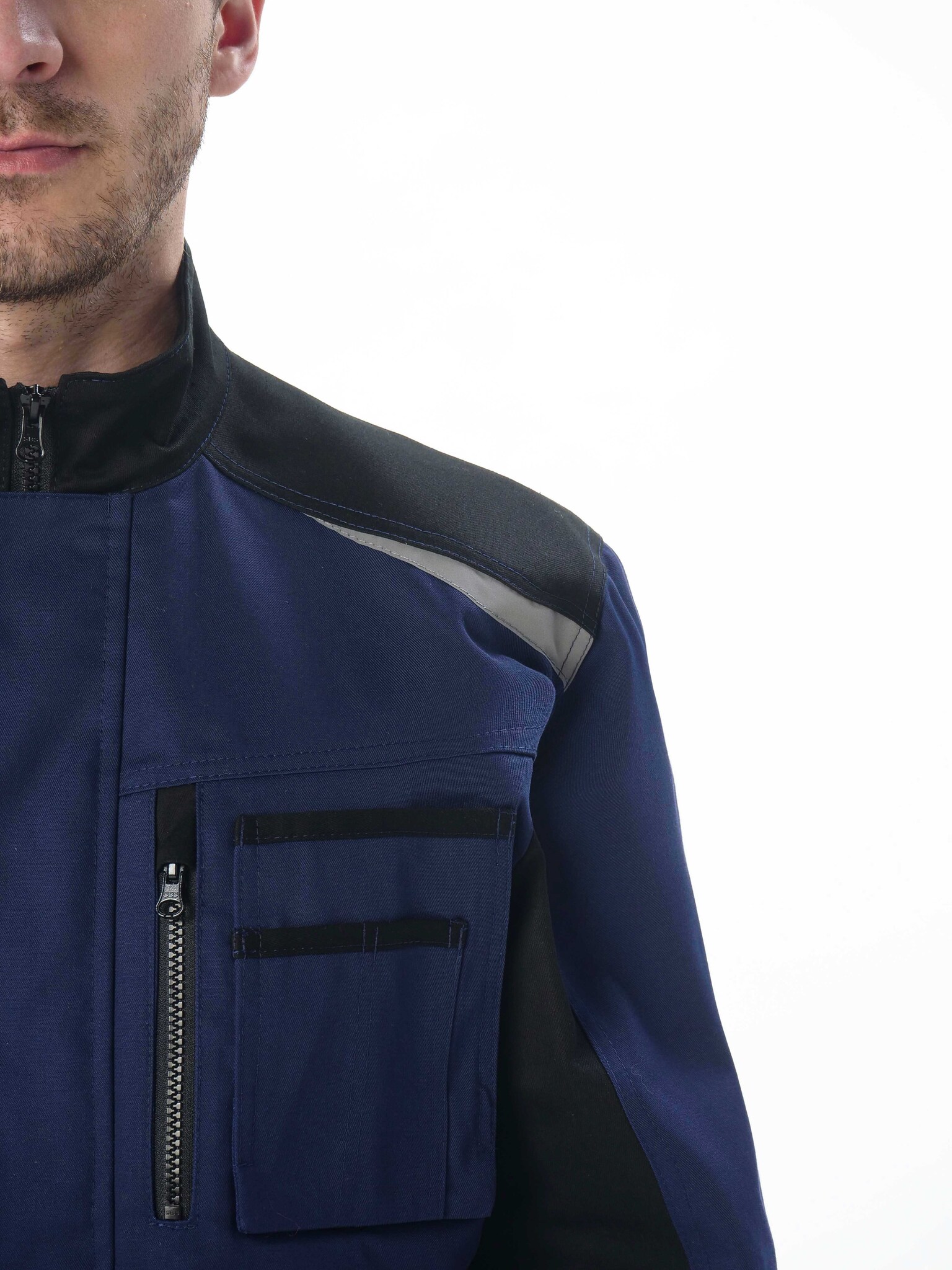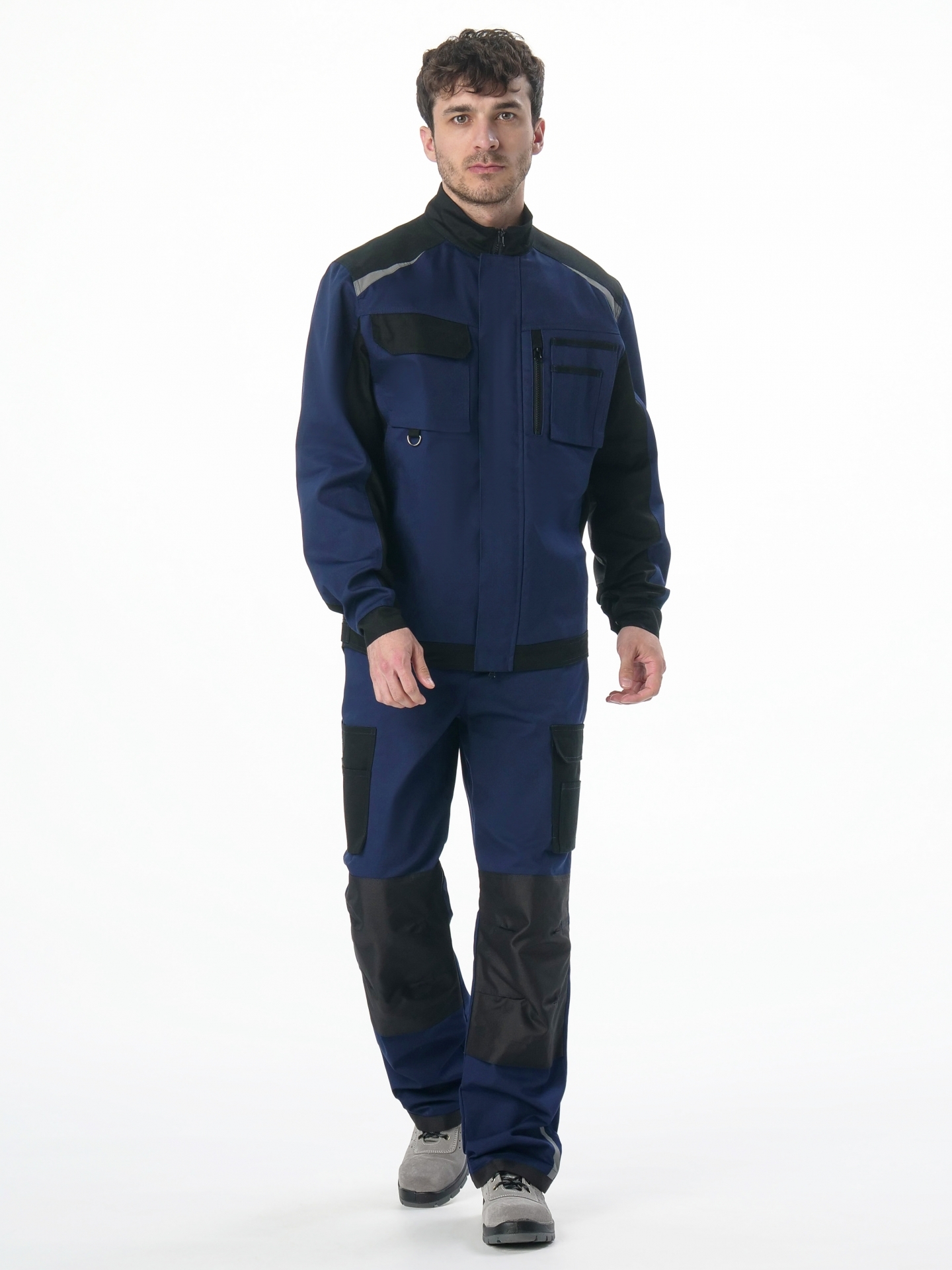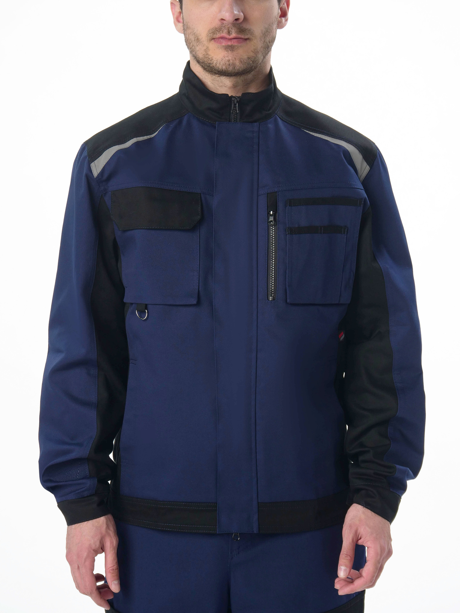- на левый нагрудный накладной карман настрачивается малый накладной карман с двумя зональными отделениями и прорезными петлями
