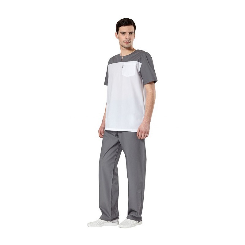 Медицинский мужской костюм "Доктор" рассчитан на интенсивную эксплуатацию. Костюм с брюками, рукав короткий, накладные карманы. Объем по талии брюк регулируется резинкой. Костюм отличается гигиеничностью, прочностью и легко переносит многократные стирки. Состоит из блузы и брюк на резинке.