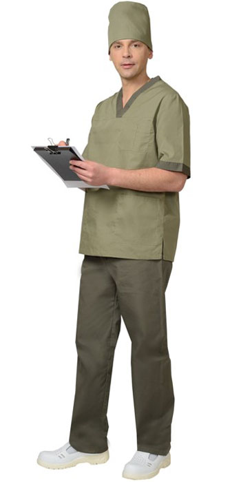 Брюки прямого покроя на резинке. Колпак одноцветный с отворотом.