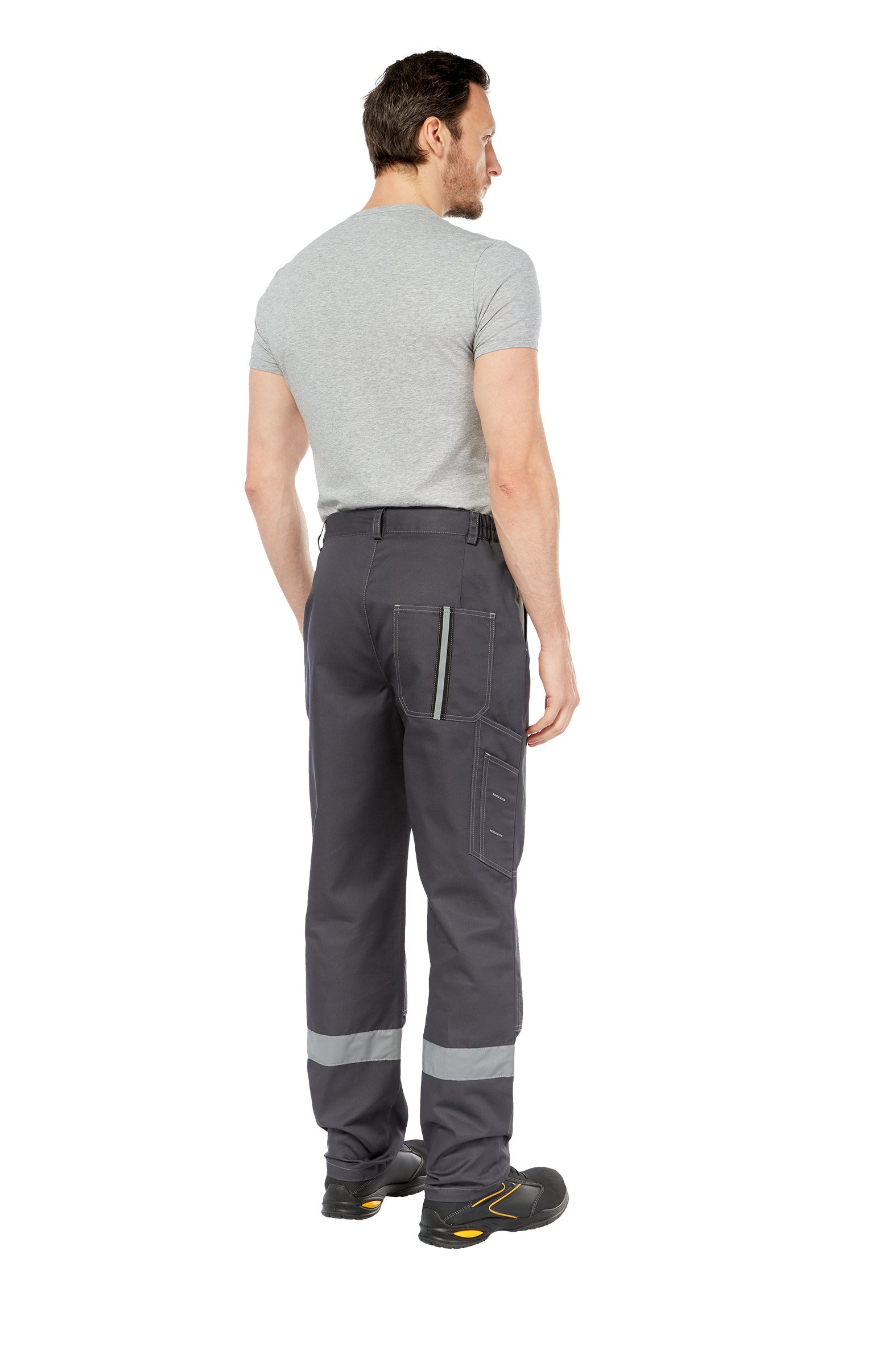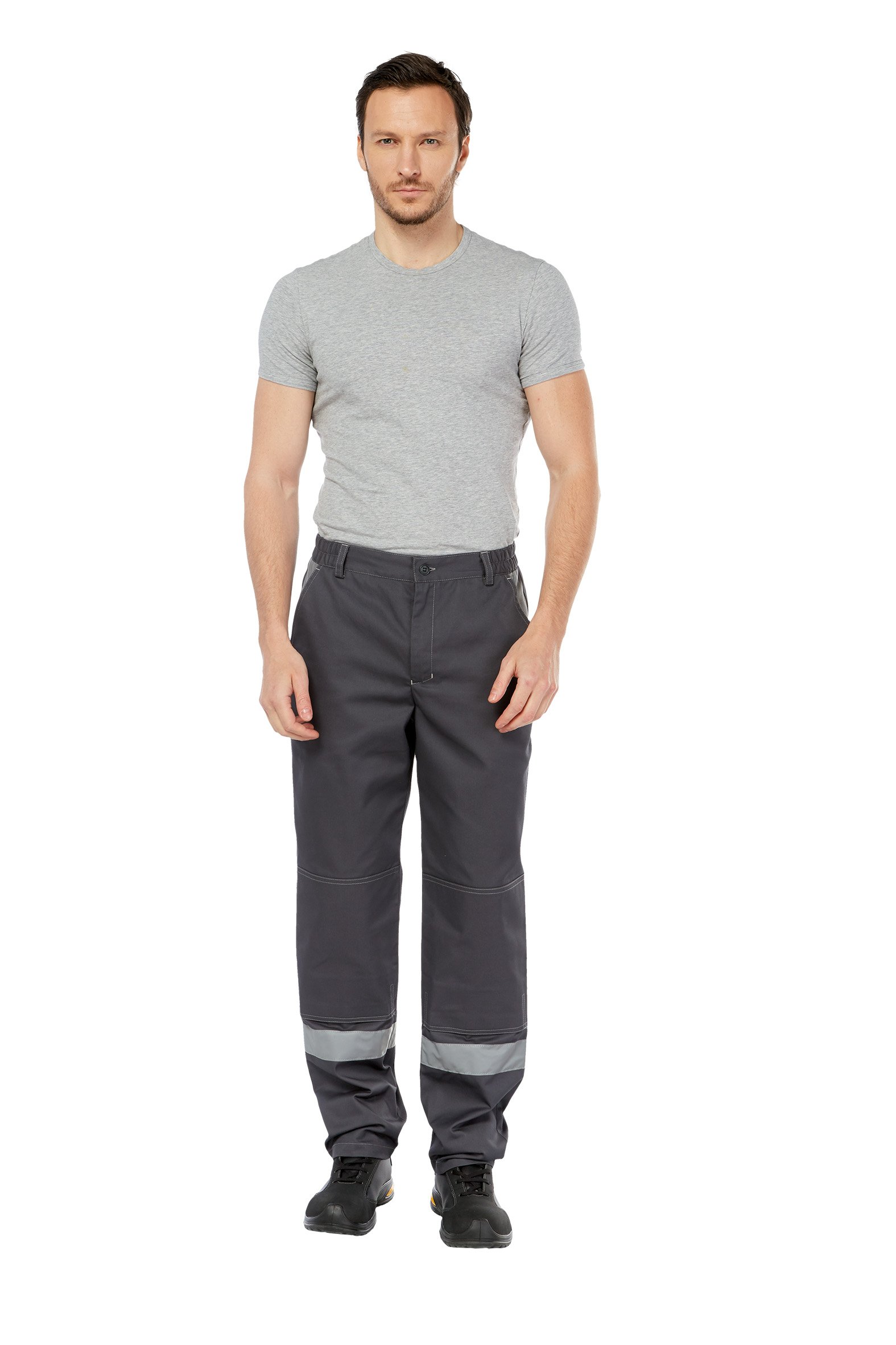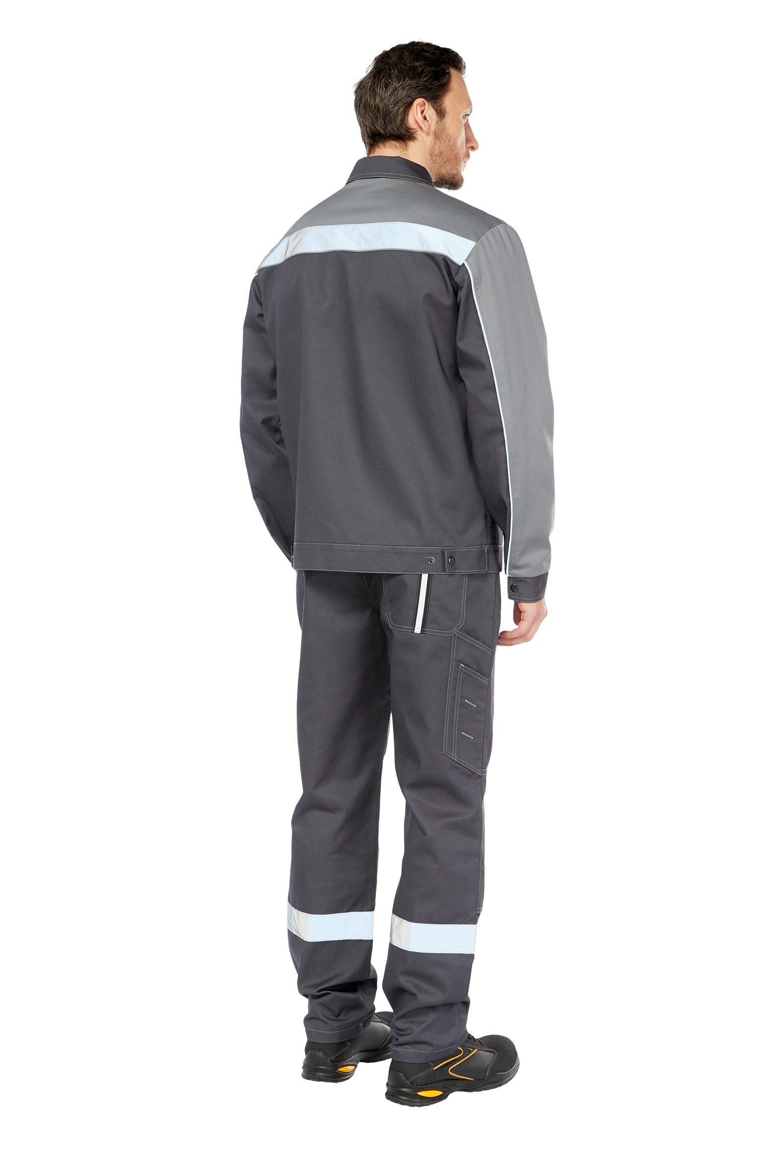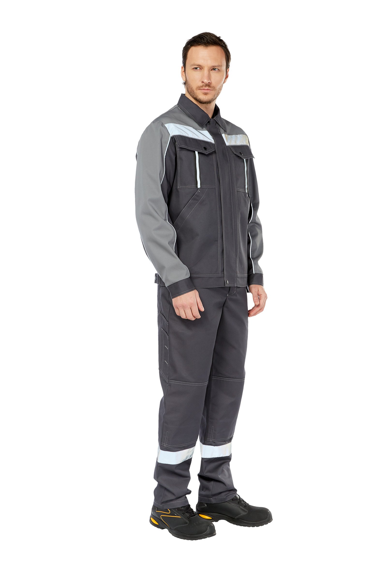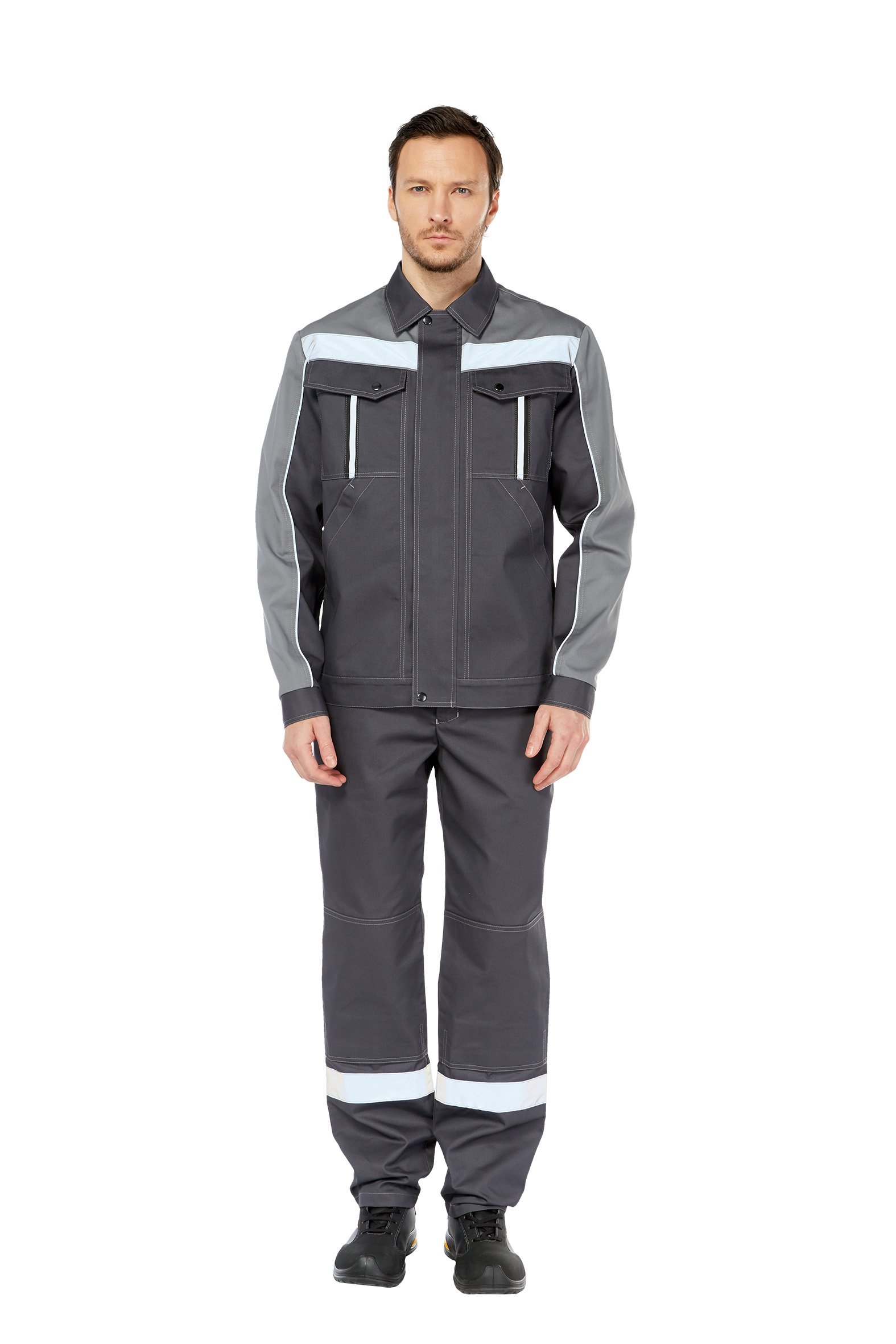 Для обеспечения безопасности в условиях плохой видимости - на кокетках куртки и по низу брюк широкие световозвращающие полосы, на карманах куртки, брюк и вдоль рукавов узкие световозвращающие элементы.