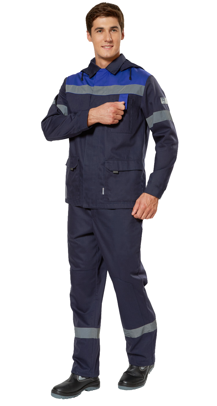 Костюм из антистатических материалов с нефтемасловодоотталкивающей отделкой и огнезащитными свойствами, cостоит из куртки и полукомбинезона: