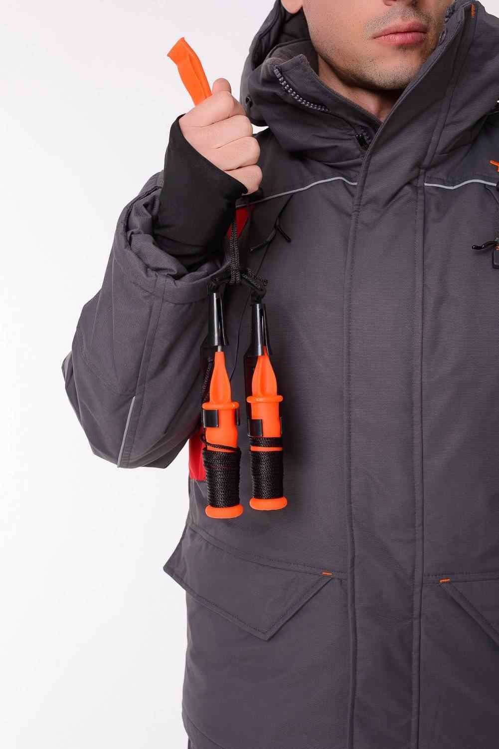 Изготовлен из качественного современного материала Таслан (100% нейлон) - долговечной, устойчивой к истиранию и многократным изгибам мембранной ткани нового поколения с высокими показателями паропроницаемости и водостойкости (10000/10000). Сочетает в себе теплоизолирующие, ветро- и влагоустойчивые показатели и прочность наружного слоя. Внешняя поверхность блокирует ветер, а внутренний слой ткани защищает от избыточной влаги. Основной цвет - Серый. Вставки красного цвета.