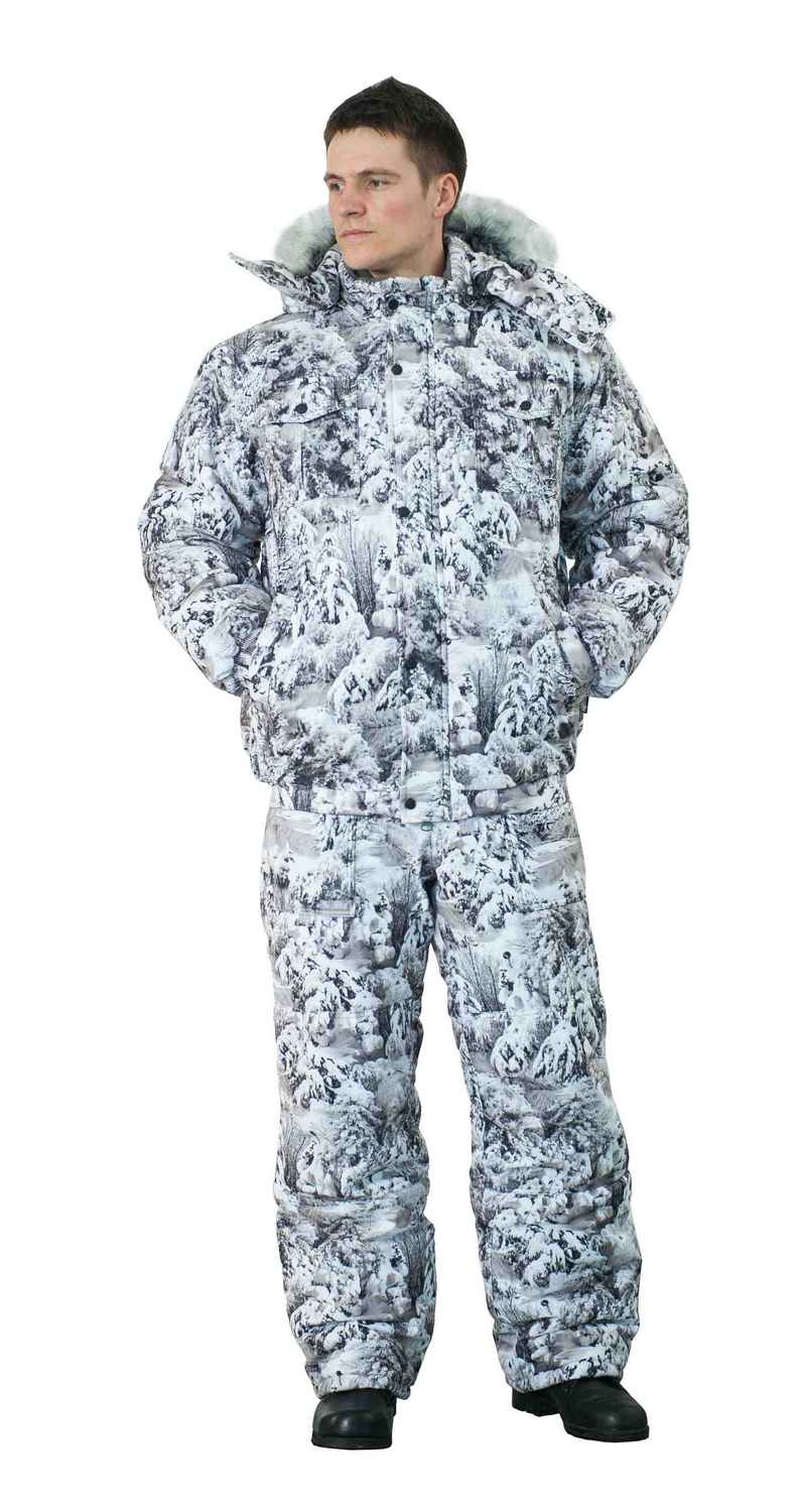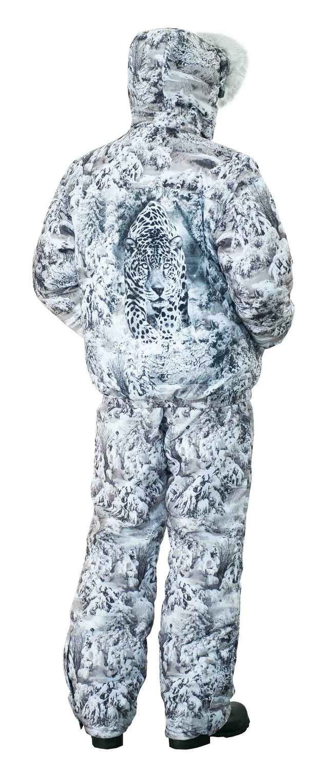 Костюм состоит из куртки и полукомбинезона. Центральная застежка на 2-х замковой молнии с ветрозащитной планкой на кнопках. Пояс собран сзади на эластичную тесьму. Глубокий капюшон с опушкой на кнопках легко отстегнуть с помощью молнии. Дополнительно регулируется эластичным шнуром с фиксаторами. Утепленный флисом воротник-стойка. Накладные карманы и усиленные наколенники. Два варианта расцветки с красивым принтом на спине.