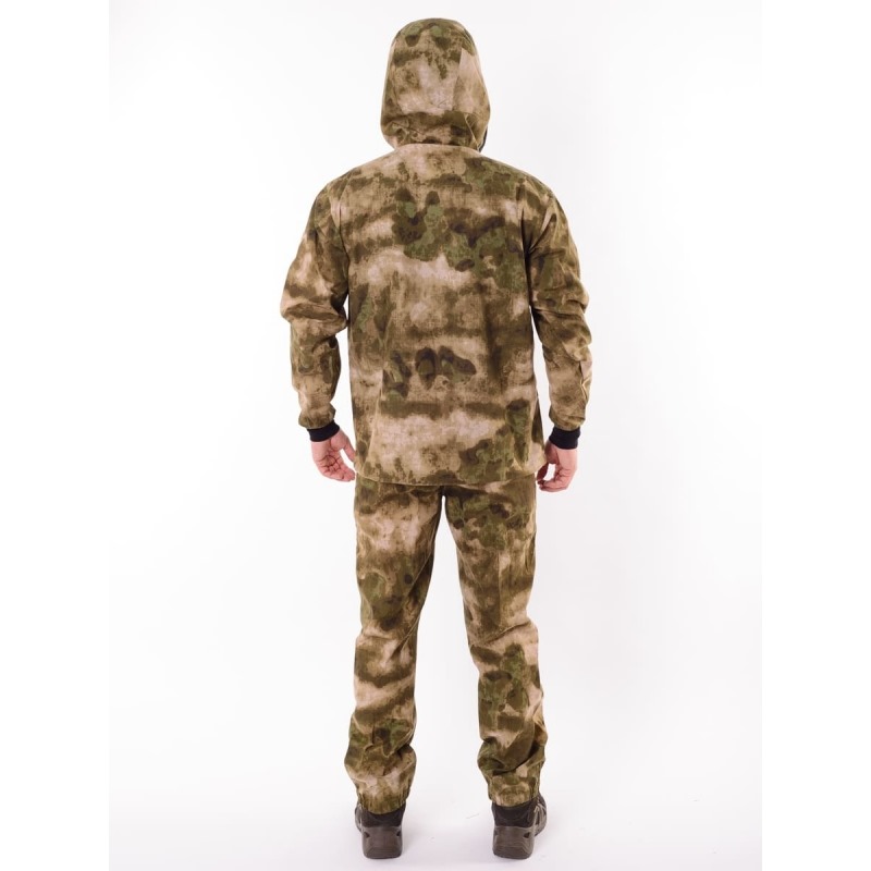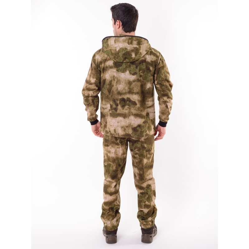 Костюм имеет двойную регулировку капюшона с фиксаторами и наконечниками в цвет ткани и в затылочной зоне хлястик с контактной лентой.