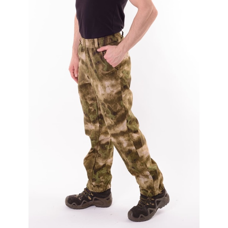 На брюках: два вместительных накладных кармана для рук, эластичный пояс и по низу эластичные цельнокроёные манжеты.