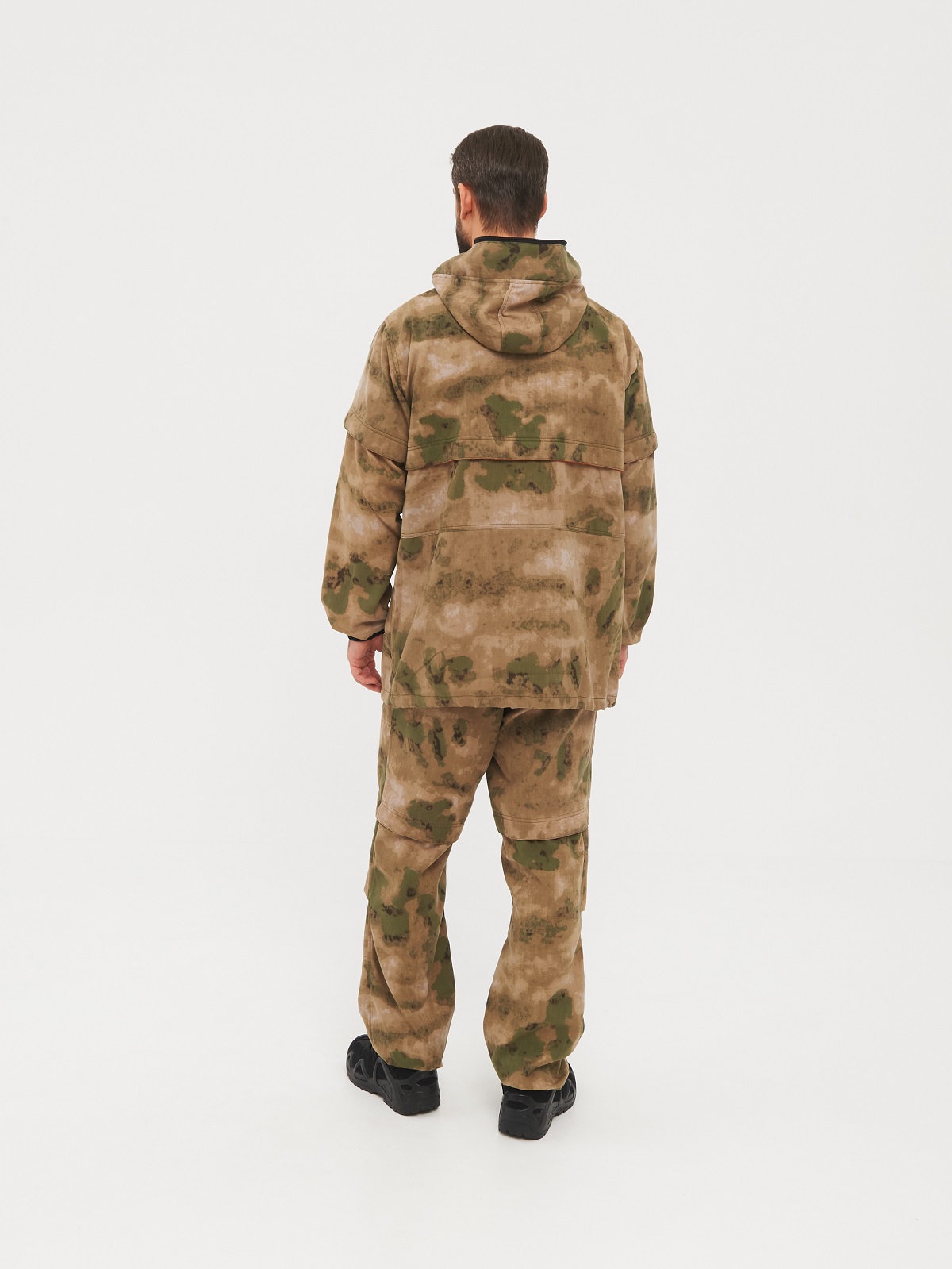 Костюм летний противоэнцефалитный из мягкой ткани Twill peach с принтом плотностью 210 гр (состав: 65% хлопок+35% пэ). Пич-эффект означает, что ткань имеет мягкую, слегка ворсистую поверхность. Костюм хорошо пропускает воздух, из-за чего при носке не возникает эффекта сауны, а возможная пыль остаётся на внешней стороне.