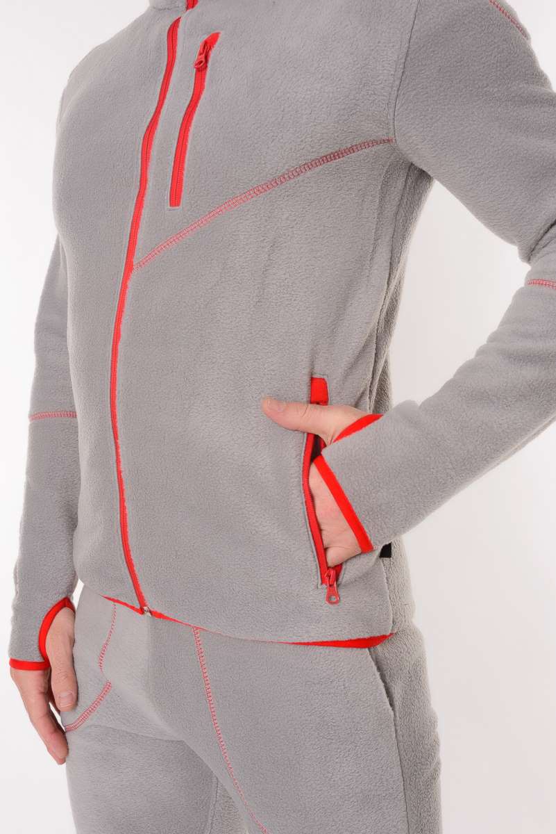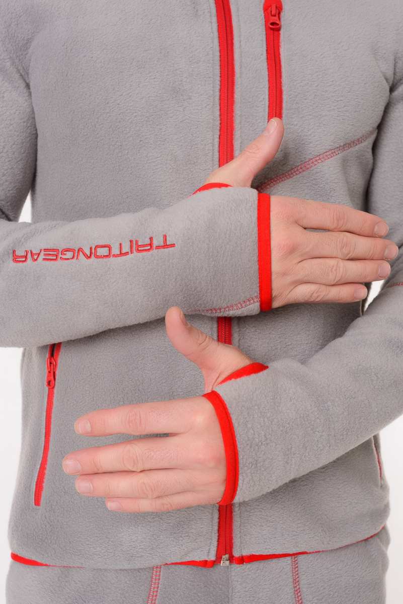 Изготовлен из материала Флис – неструктурированного «валяного» материала, при производстве которого используется специальные технологии плетения волокон и создания ворса, при этом ворс составляет единое целое с основой. Ткань хорошо сохраняет тепло, почти не впитывает влагу, приятна на ощупь, не вызывает аллергии. Благодаря специальной обработке волокон, препятствующей скатыванию ворса, долго сохраняет первоначальный внешний вид. Плотность 270 гр/м2. Цвет серый.