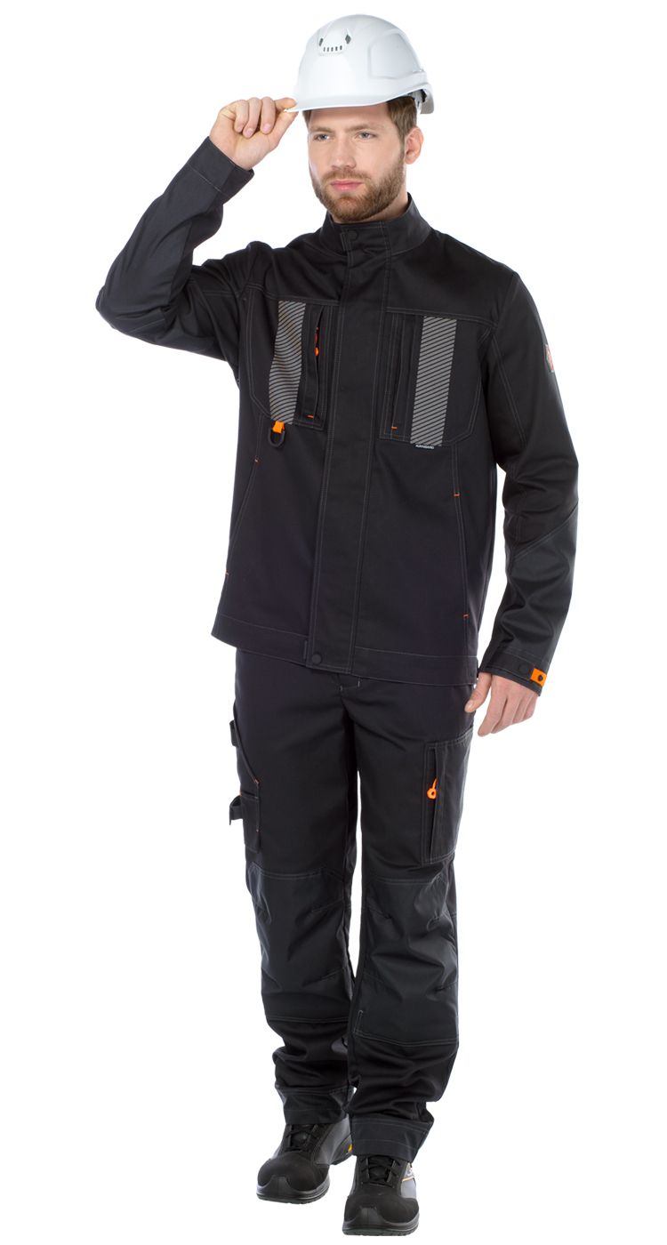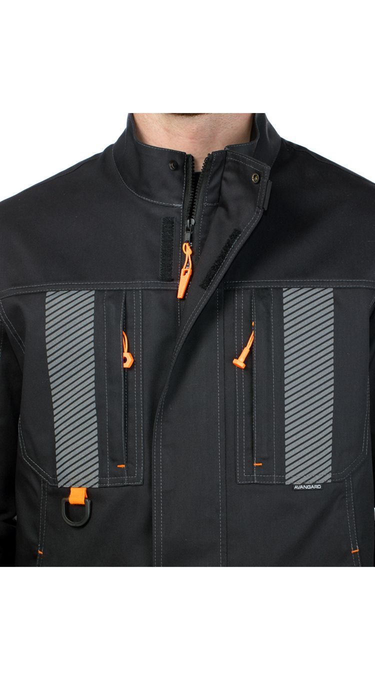 Вместительные нагрудные карманы на молниях, один из них с пластиковым полукольцом для крепления пропуска. На карманах световозвращающие термотрансферы.