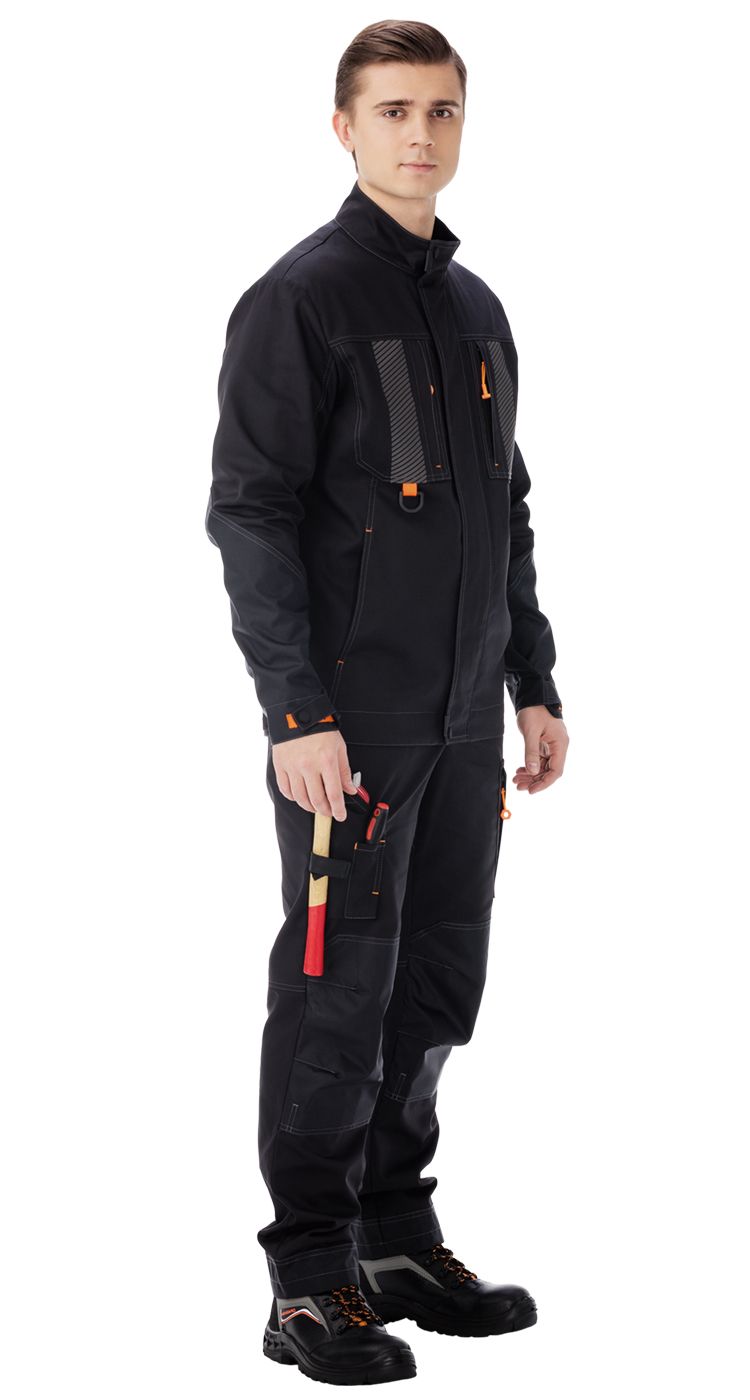 Костюм состоит из куртки и брюк.