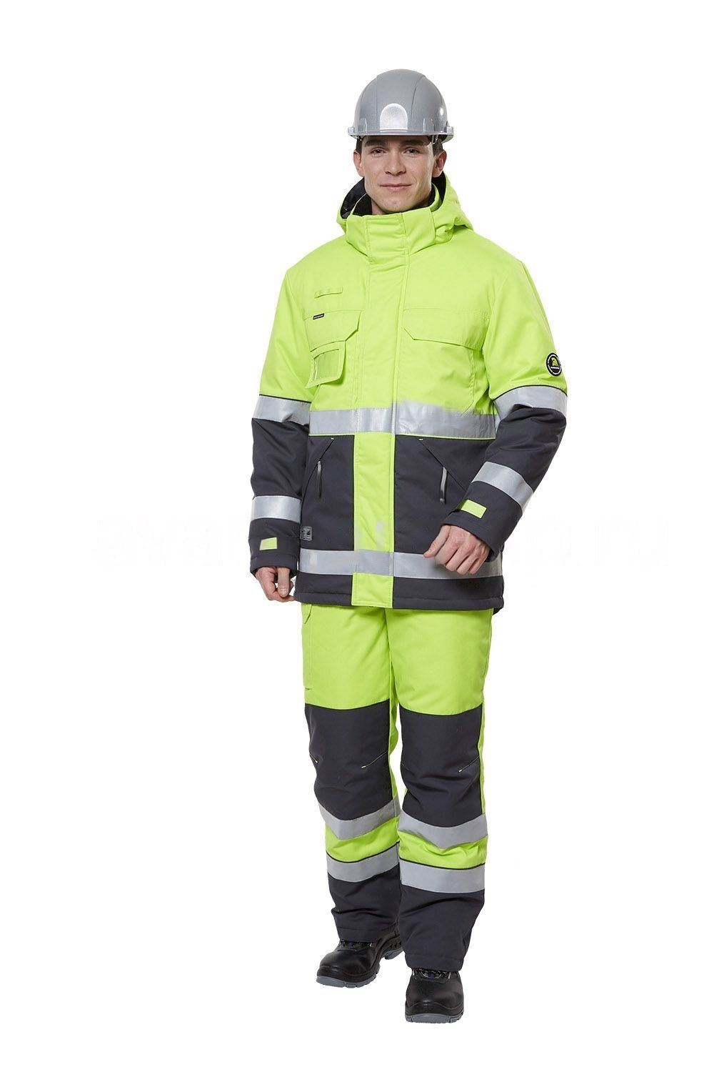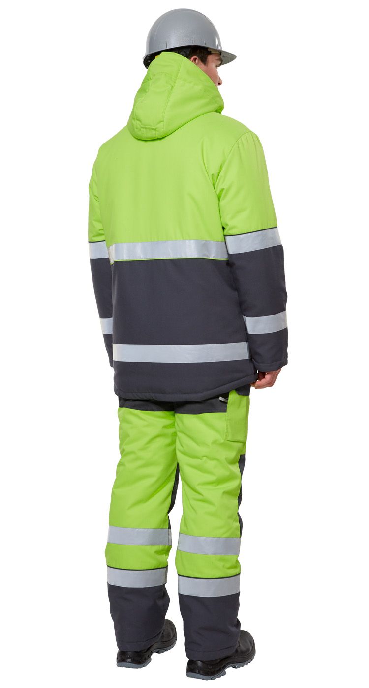 - на стане куртки и рукавах расположены 2 ряда широких световозвращающих полос,