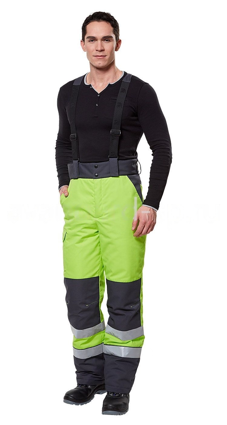 - по низу брюк расположены 2 ряда широких световозвращающих полос.