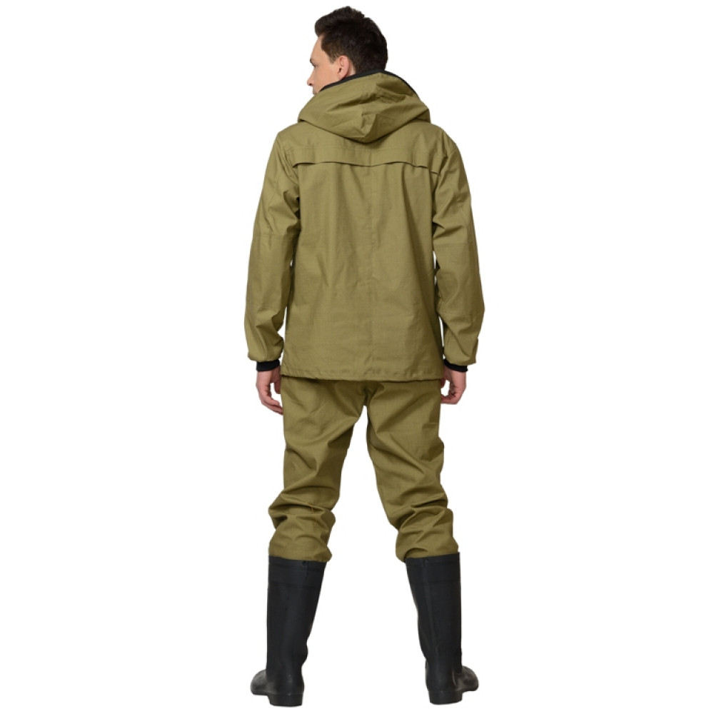 Куртка с притачным капюшоном с противомоскитной сеткой и накладным нагрудным карманом, в который при необходимости можно спрятать противомоскитную сетку. Рукава с трикотажной манжетой, ширина куртки внизу регулируется.Брюки с цельнокроеным поясом, стянутым эластичной лентой, с 4-мя шлёвками, с наколенниками, с накладным карманом с клапаном, застёгивающимся на ленту "контакт", низ брюк с трикотажными манжетами.