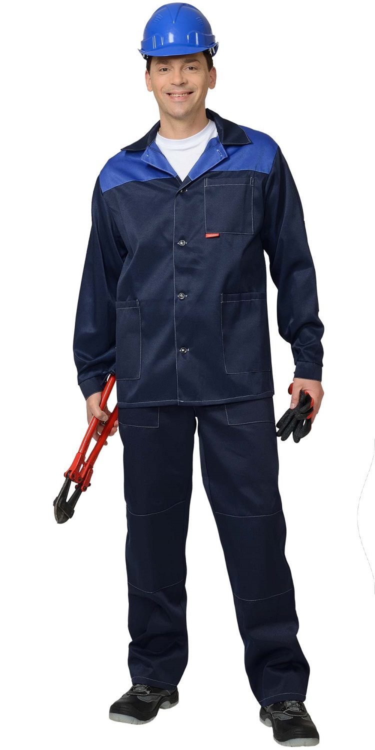 Костюм состоит из куртки и брюк.