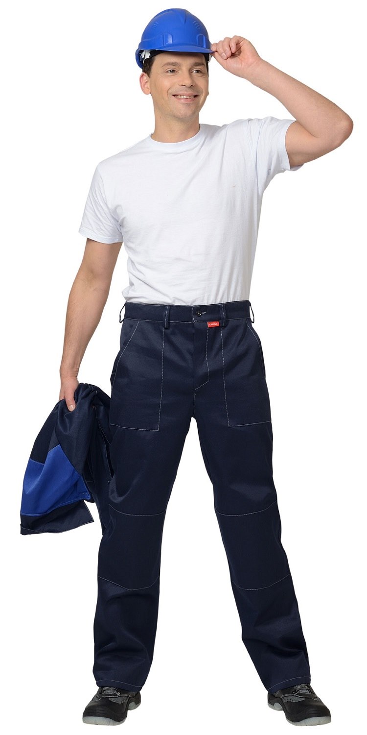 Брюки с застёжкой гульфика на пуговицы, с боковыми карманами, с наколенниками.