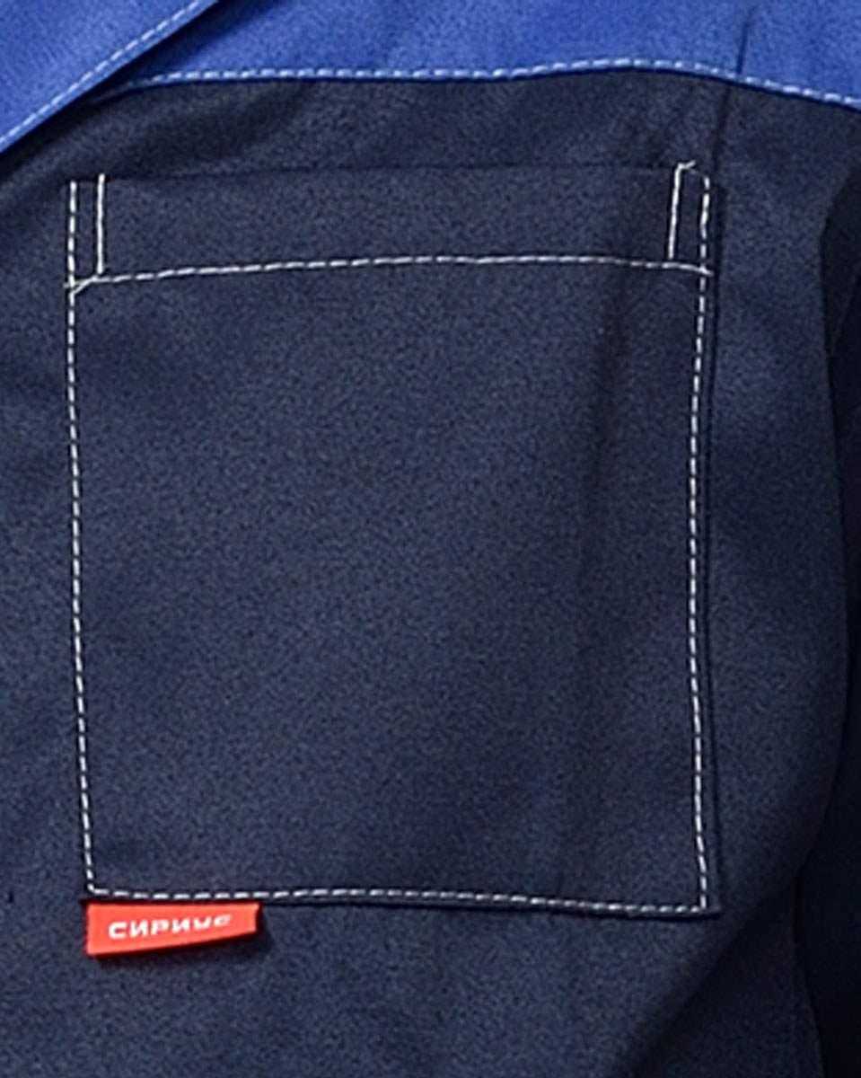 Куртка удлинённая, прямого силуэта, воротник отложной, с центральной застёжкой на пуговицы, с верхним левым нагрудным карманом и нижними карманами. Рукава с манжетами на пуговицах и с налокотниками.