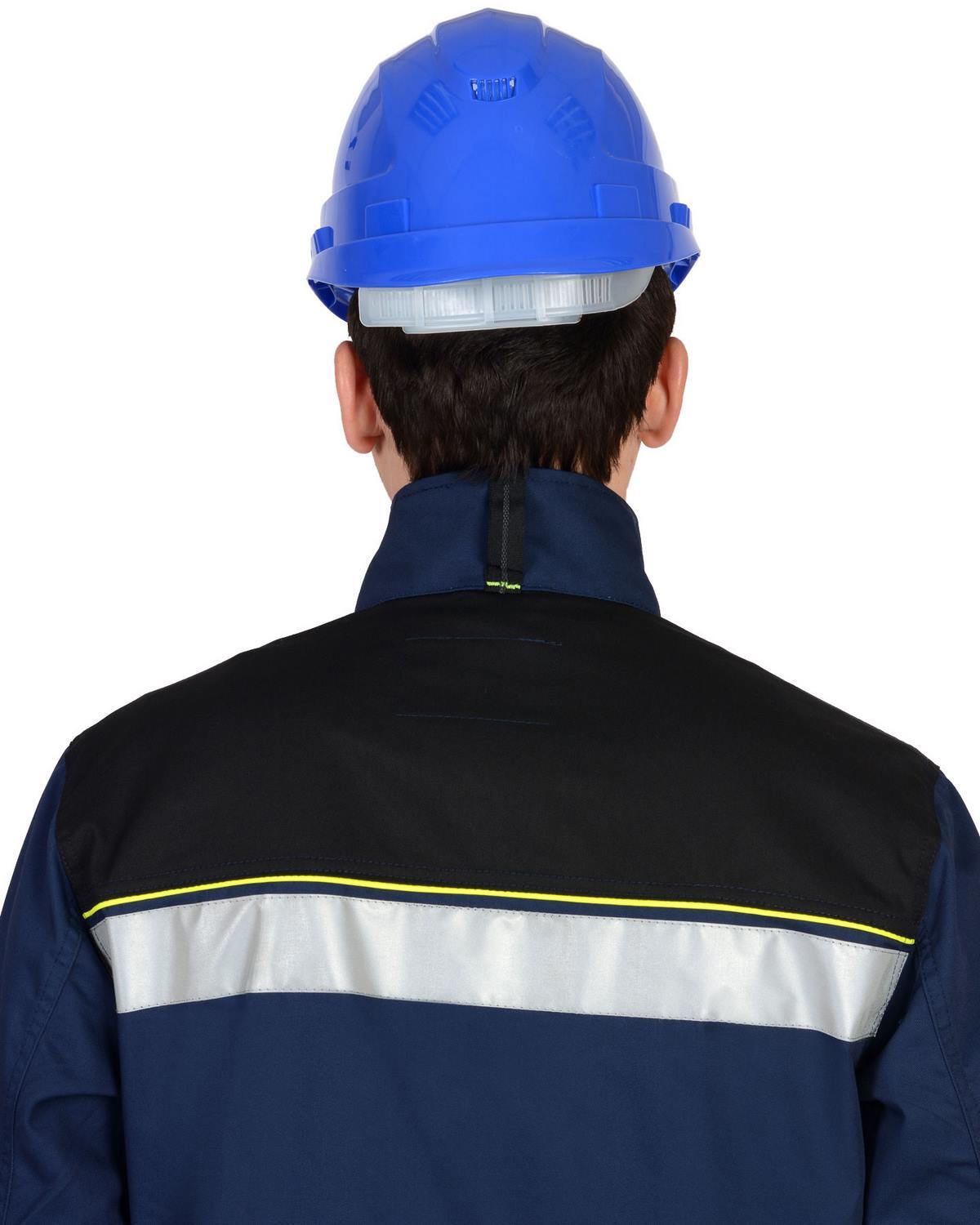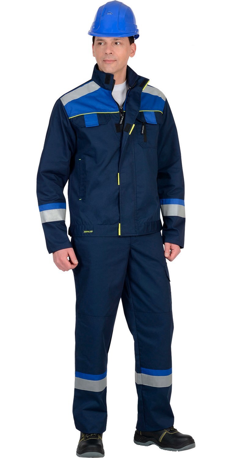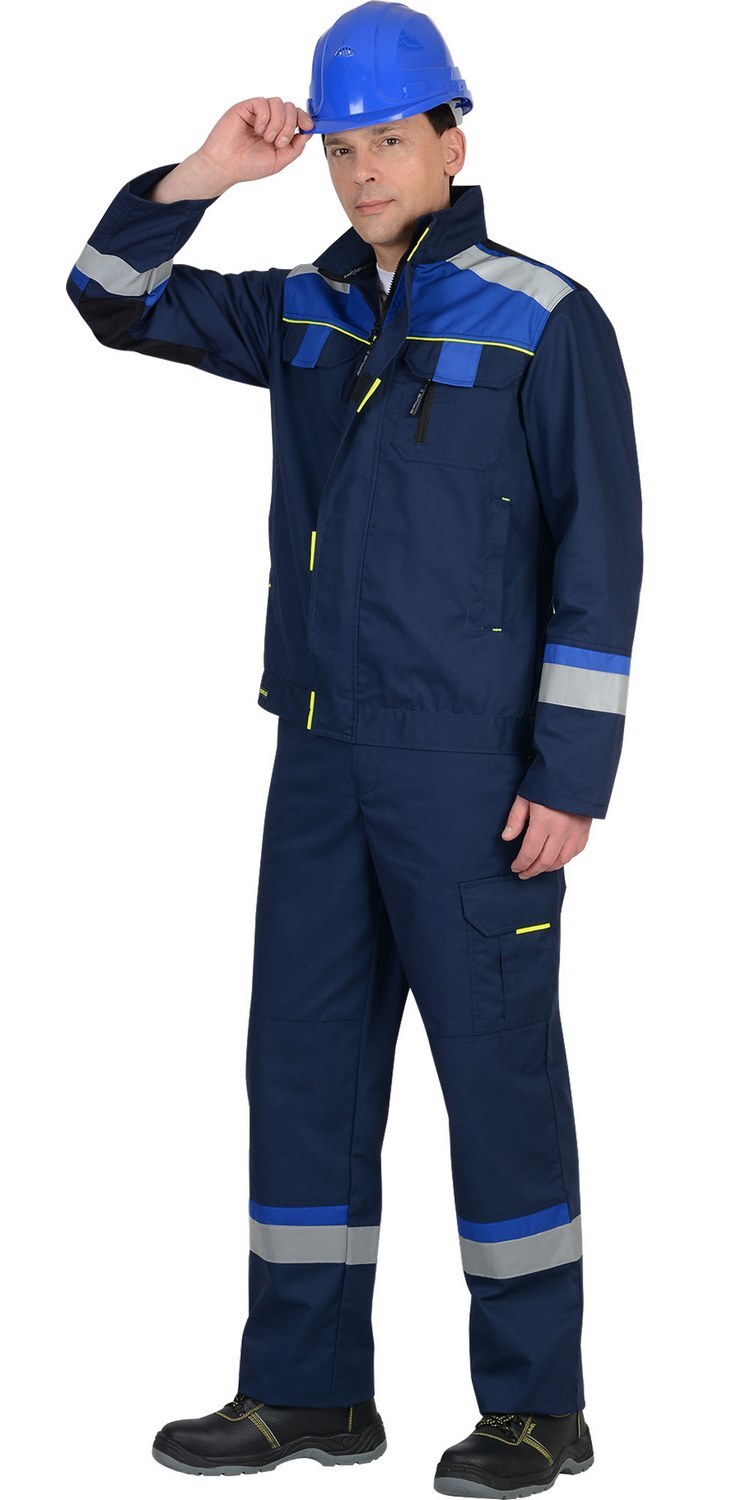 Полукомбинезон с застёжкой спереди на три петли и три пуговицы и с застёжкой в правом боковом шве на три петли и три пуговицы, с нагрудным накладным карманом и боковыми, внутренними карманами, с накладным карманом на левом боковом шве с клапаном на липучке, с наколенниками, с двумя задними и карманами для инструментов, по спинке вставлена резинка.