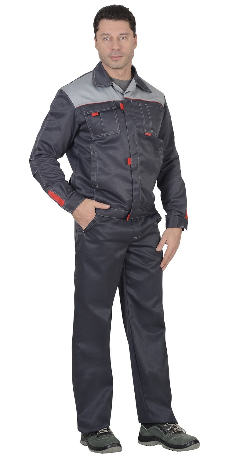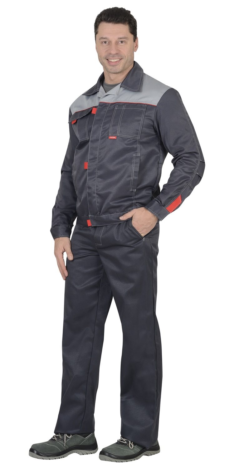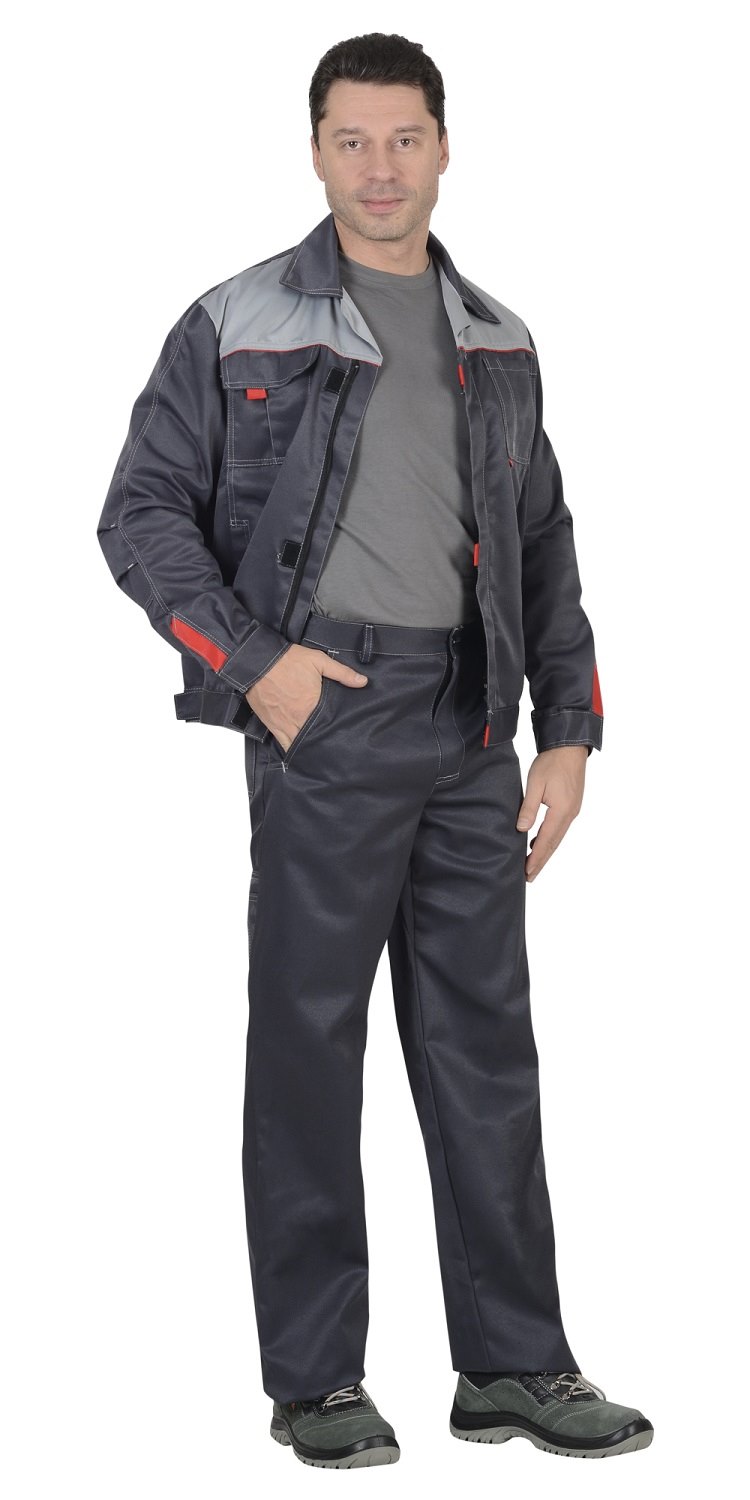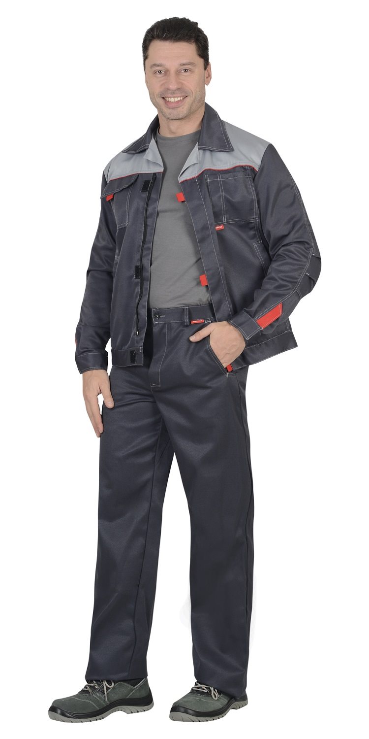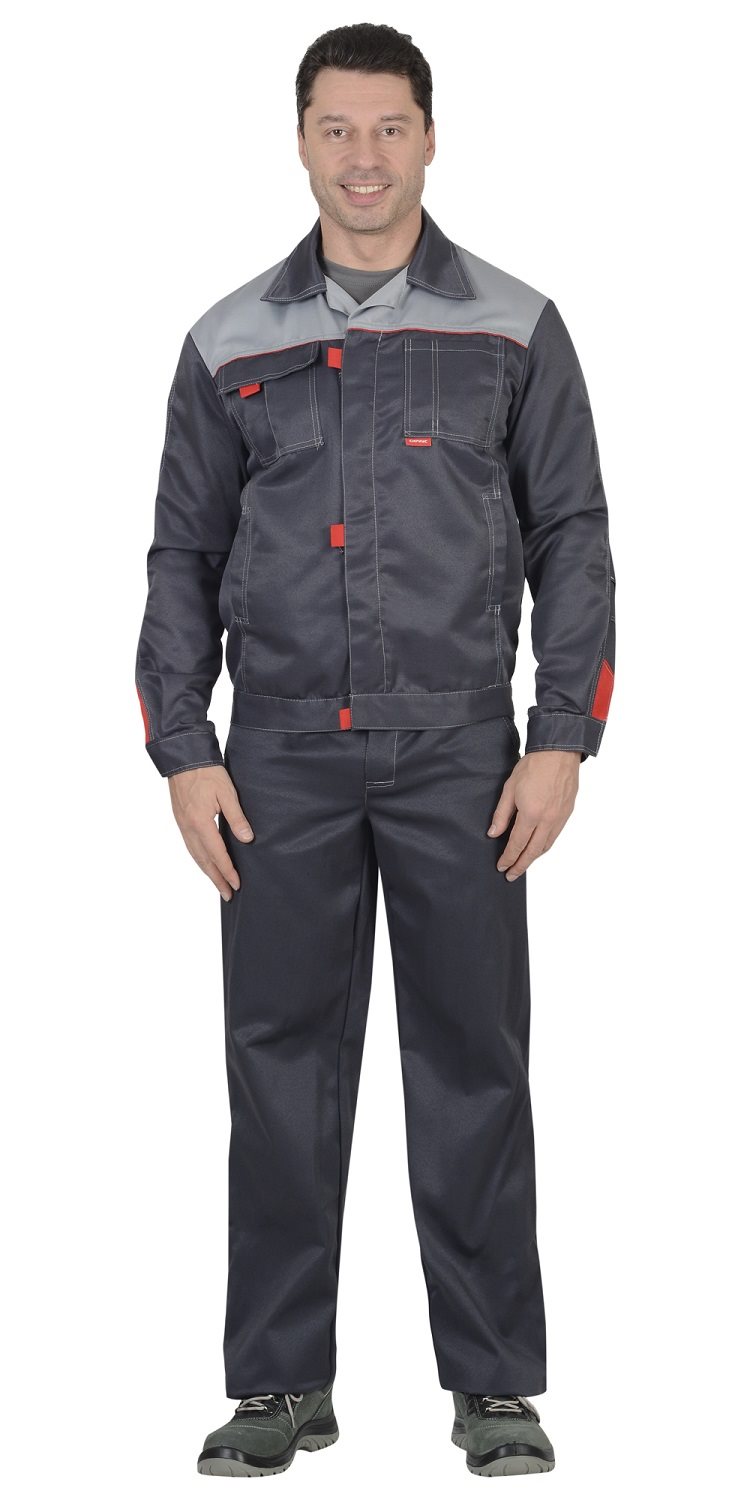 Костюм состоит из куртки и брюк.