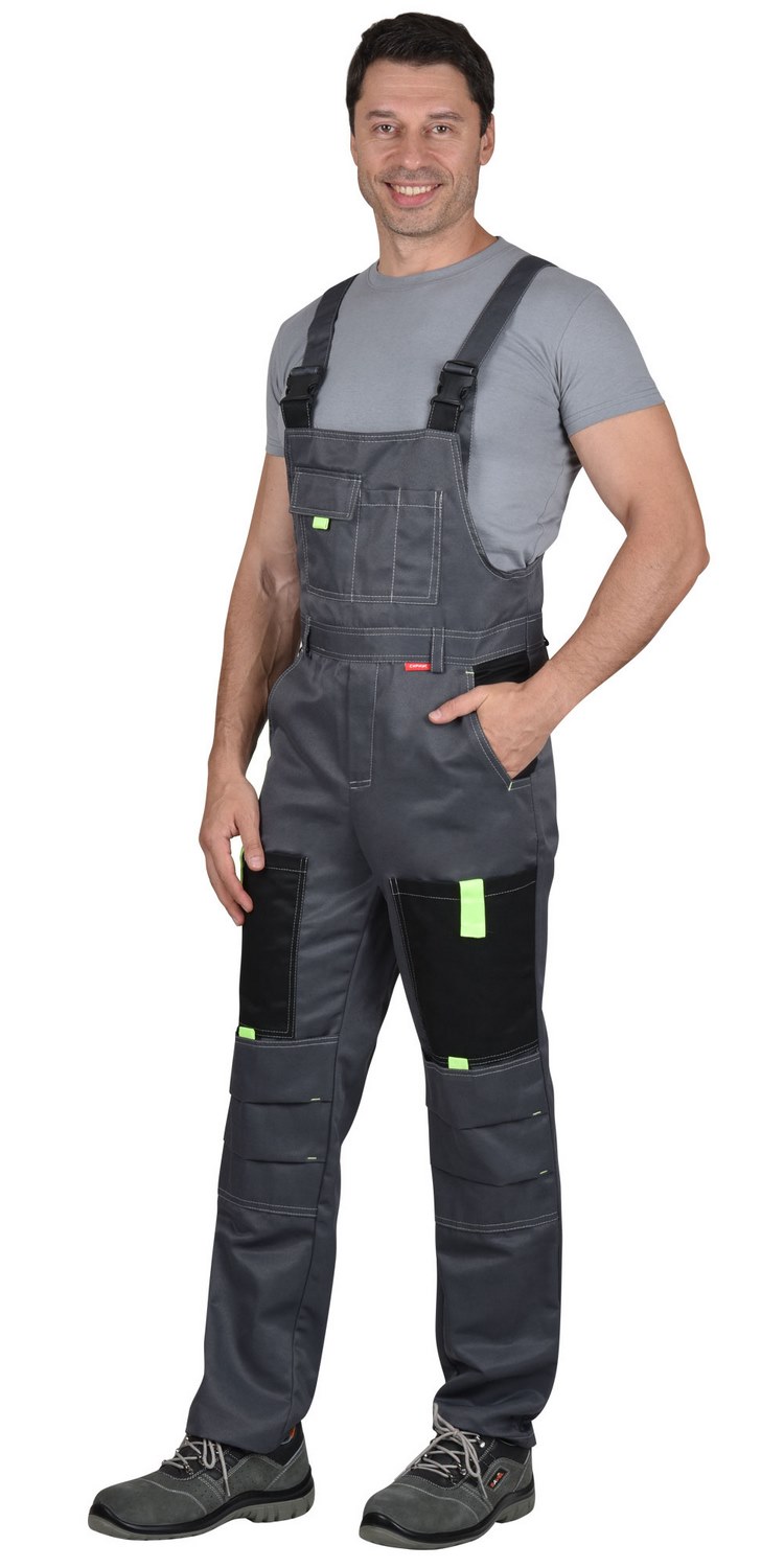 Полукомбинезон, комбинированный с усиленными накладками в области колен, объем по линии талии регулируется тесьмой.Рекомендуется для рабочих специальностей. Современная практичная в эксплуатации и очень экономичная модель летней спецодежды.