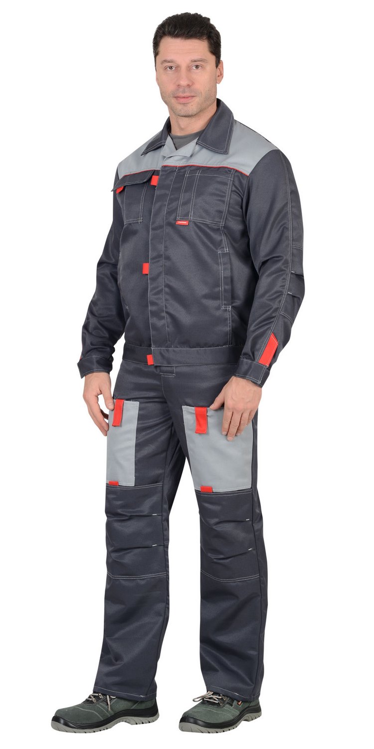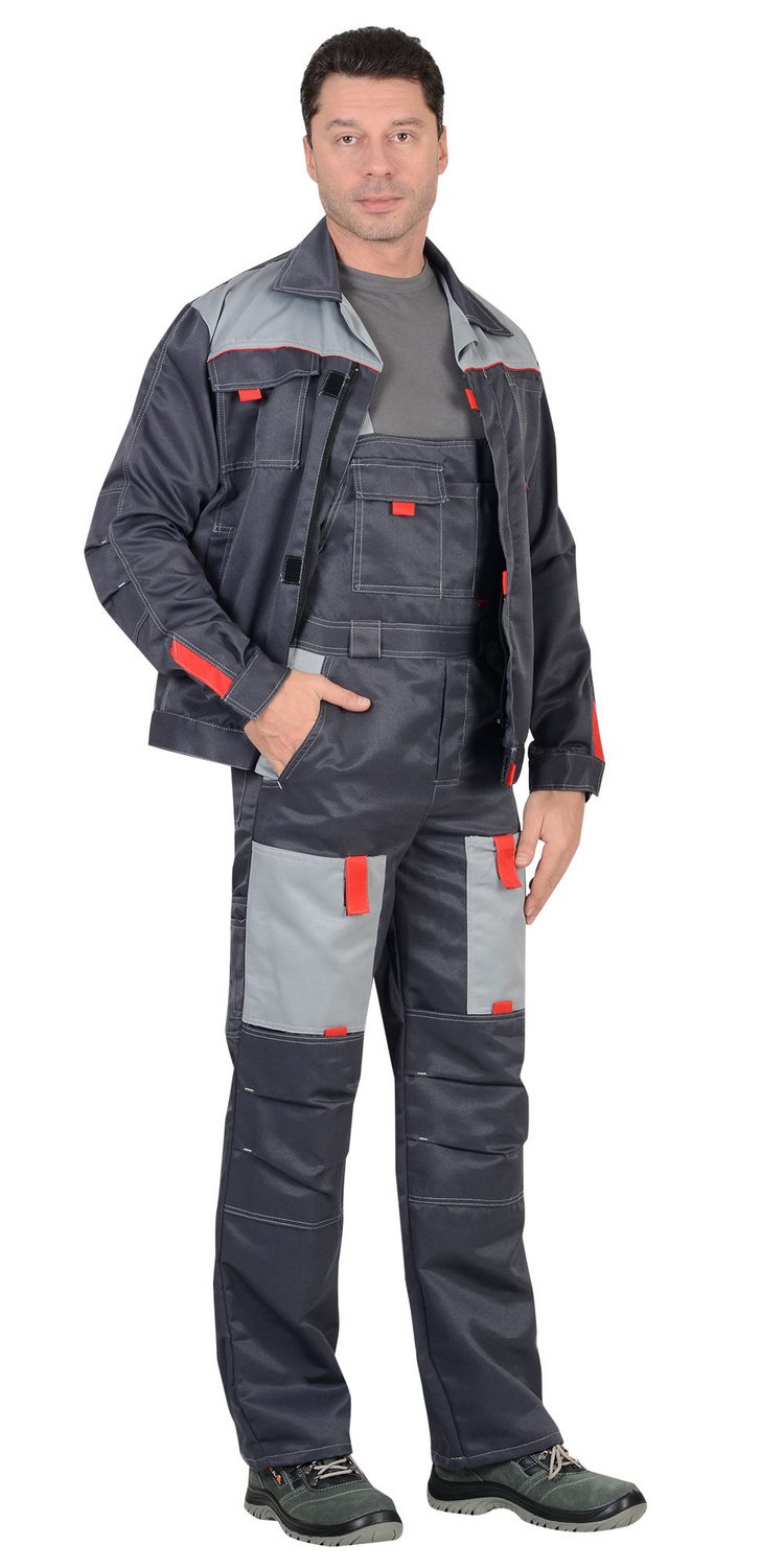 Костюм "Сириус-Фаворит" полукомбинезон (т.серый/с.серый/красный)