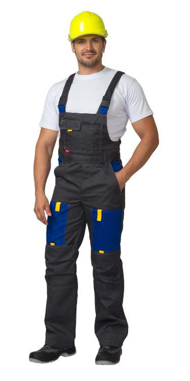 Полукомбинезон, комбинированный с усиленными накладками в области колен, объем по линии талии регулируется тесьмой.Рекомендуется для рабочих специальностей. Современная практичная в эксплуатации и очень экономичная модель летней спецодежды.