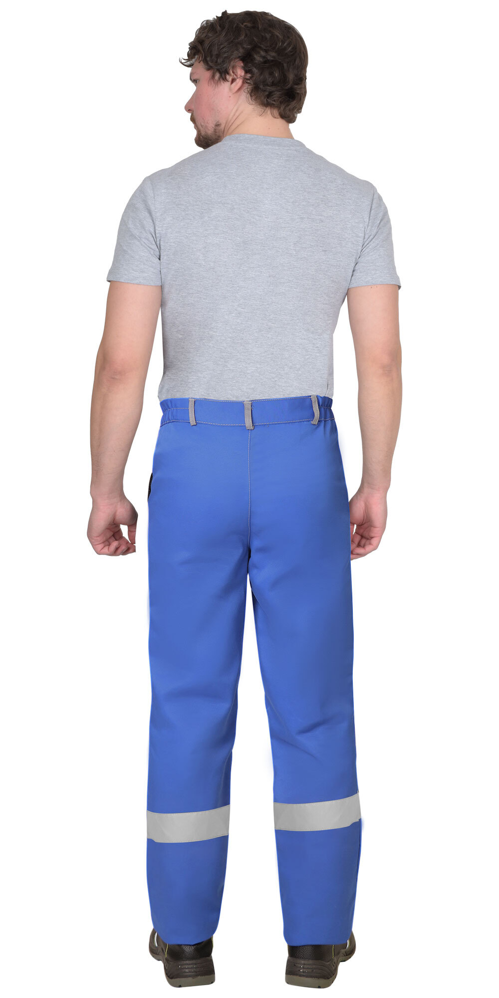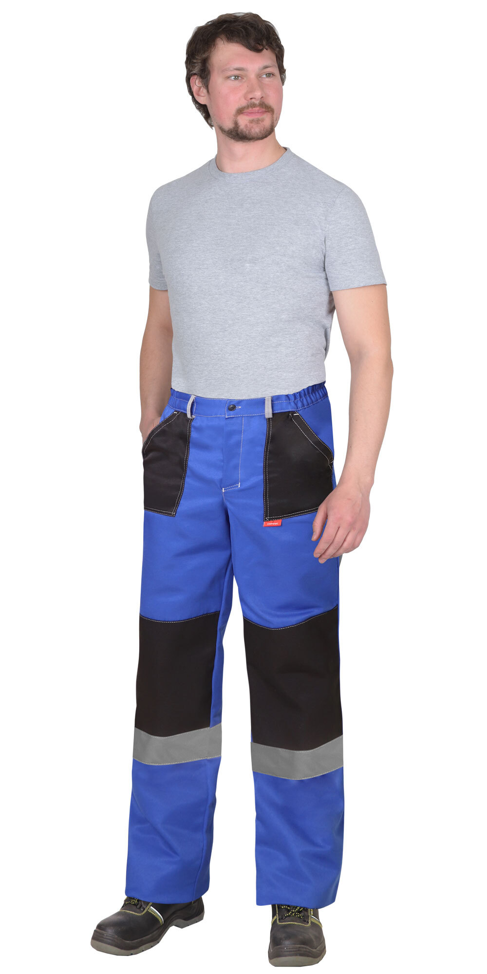 Брюки с застежкой гульфика на молнию. Передние половинки с боковыми накладными карманами и наколенниками. Пояс брюк с резинкой по боковым сторонам для мягкого прилегания.