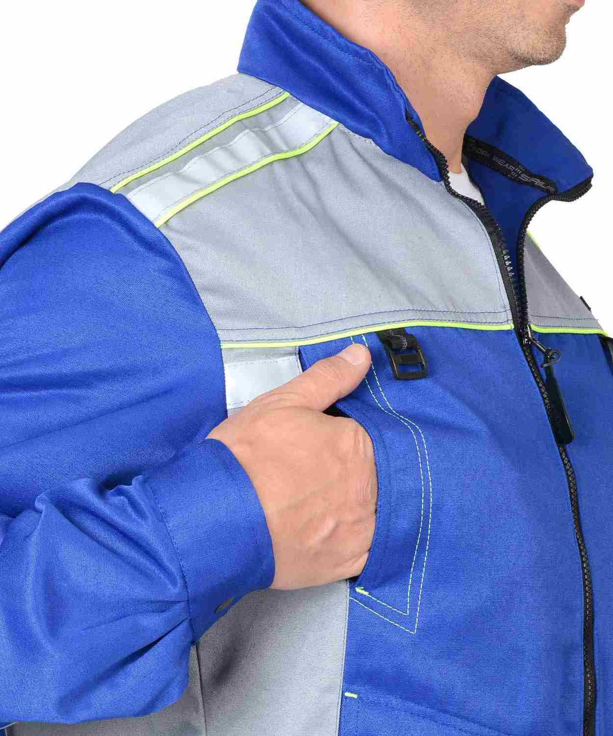 Куртка прямого силуэта, короткая,, воротник-стойка, с центральной застёжкой на 1-замковую тесьму - "молнию", с подрезными бочками, с верхними и нижними карманами в швах, с притачным поясом регулирующимся по ширине при помощи хлястиков и кнопок. Рукава с манжетами на кнопках.