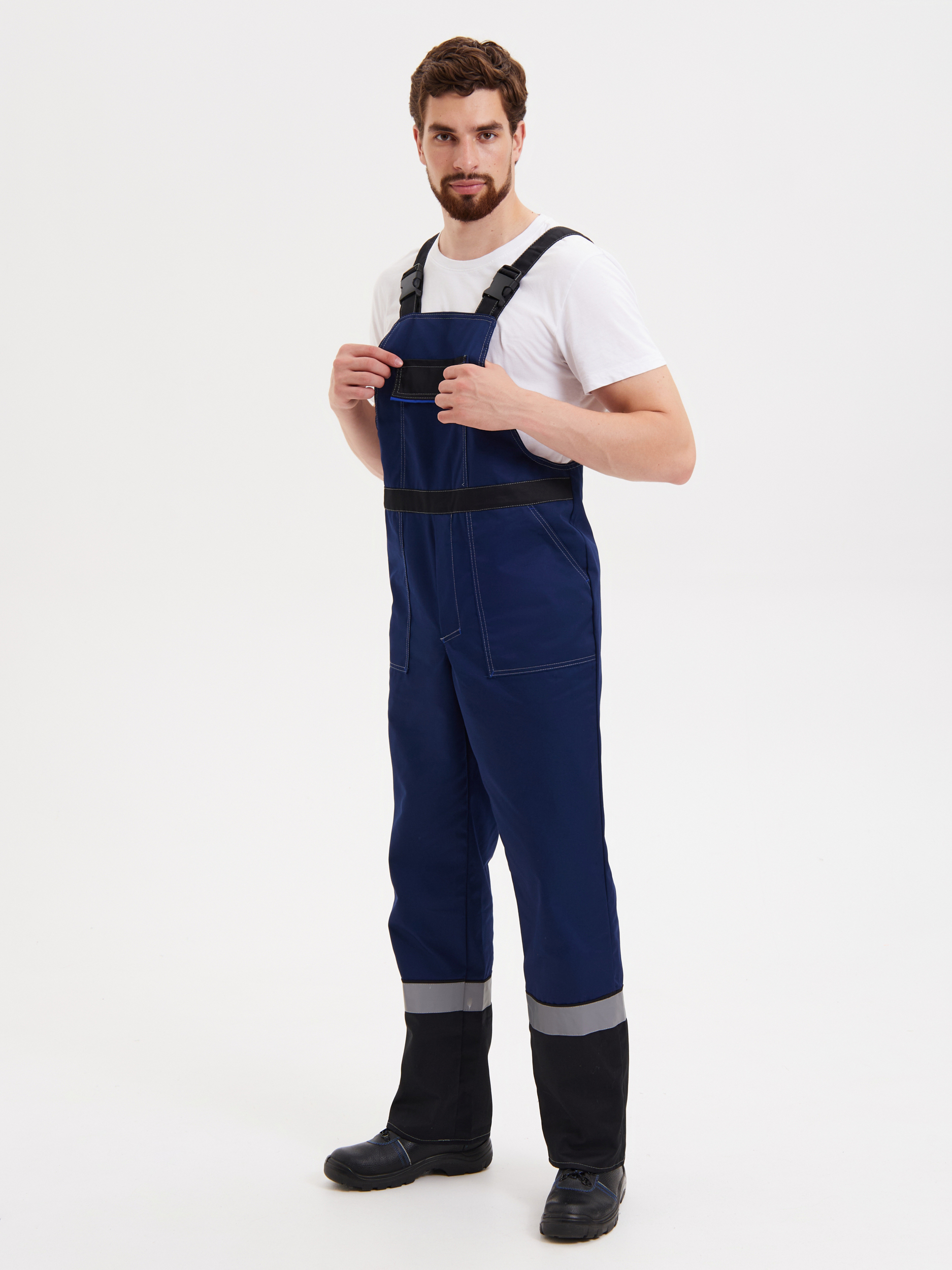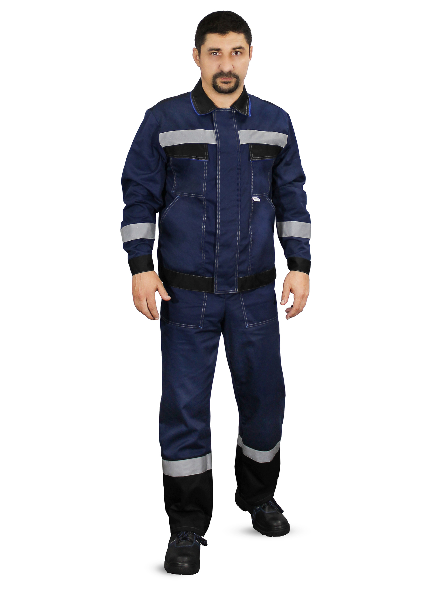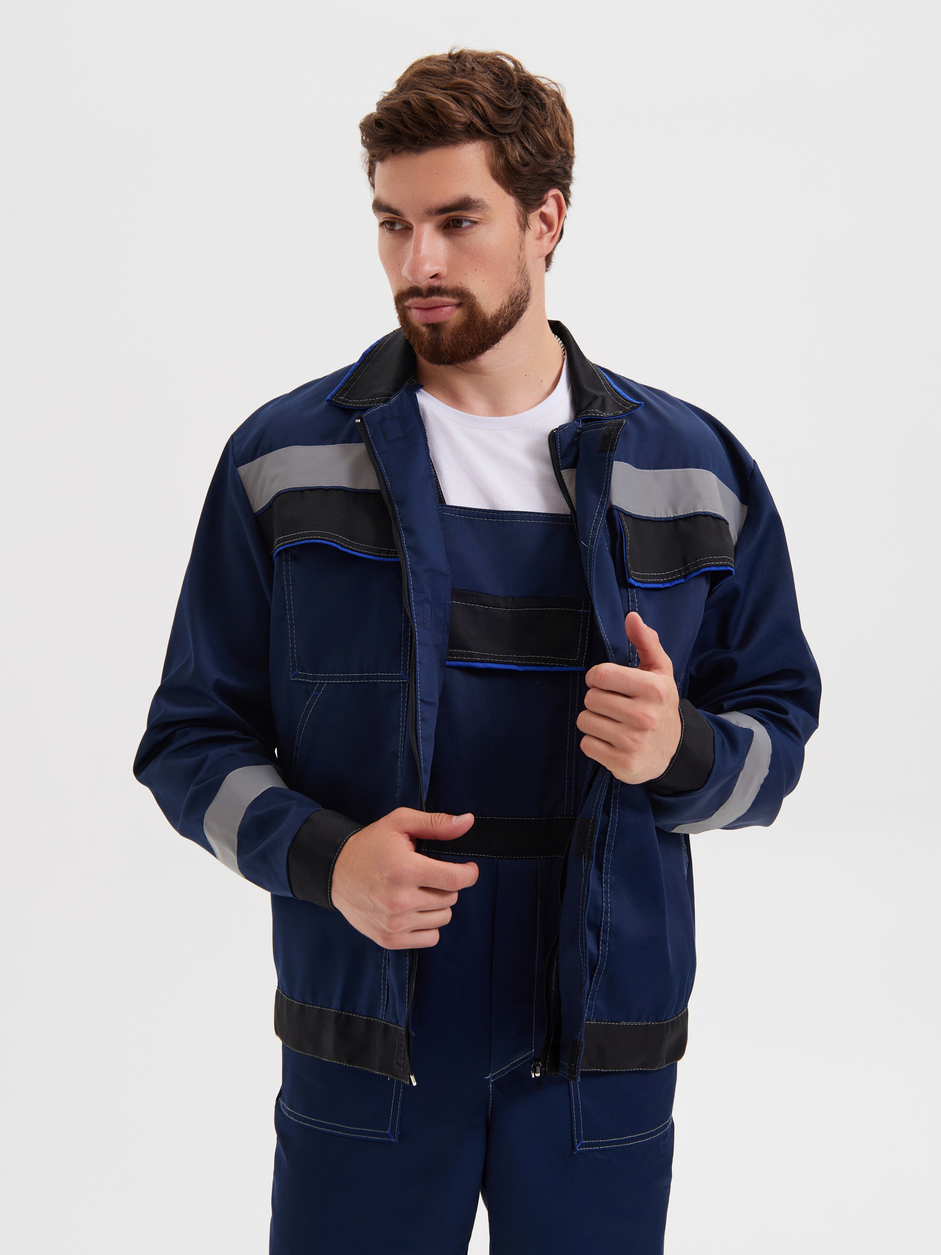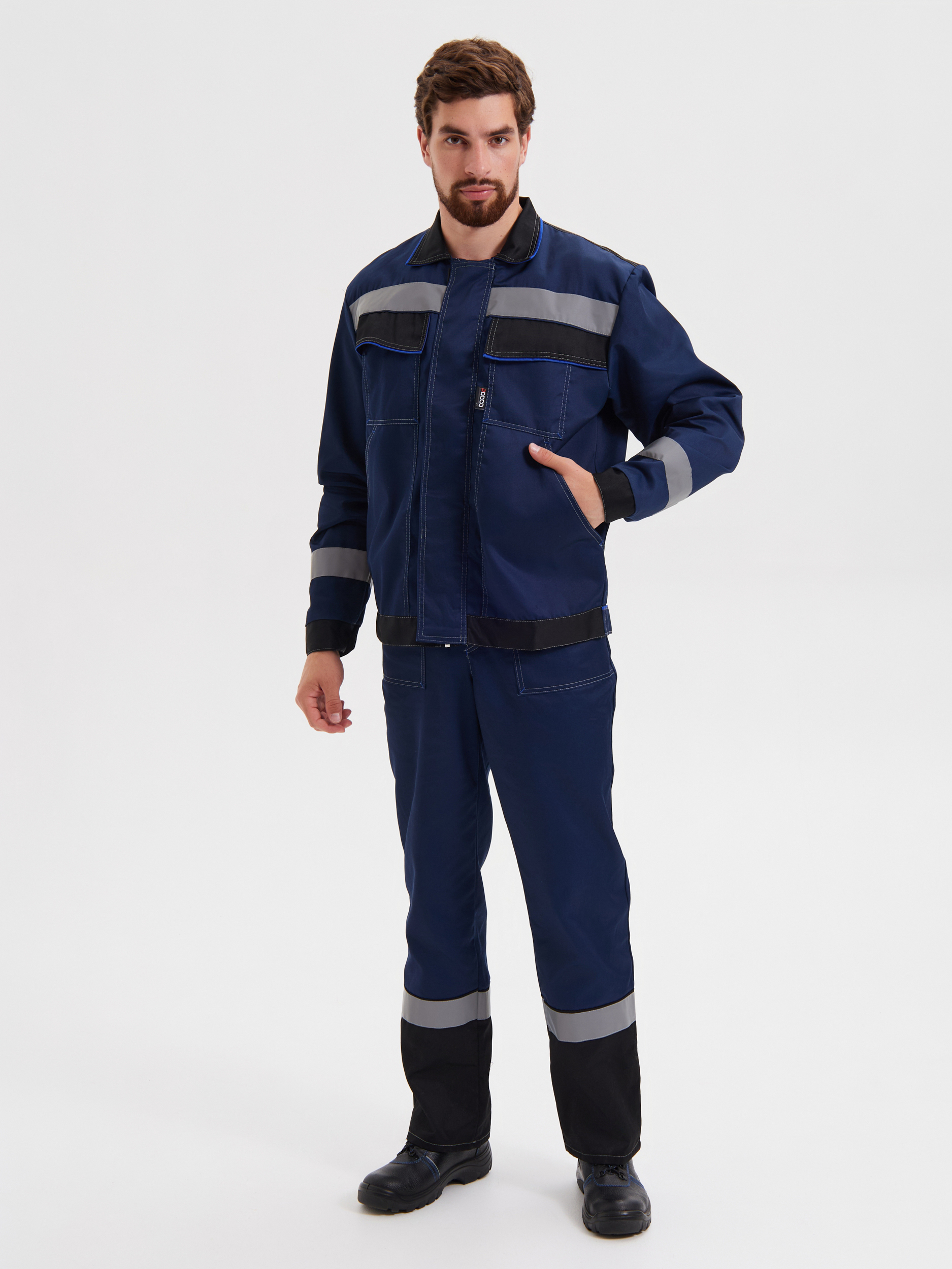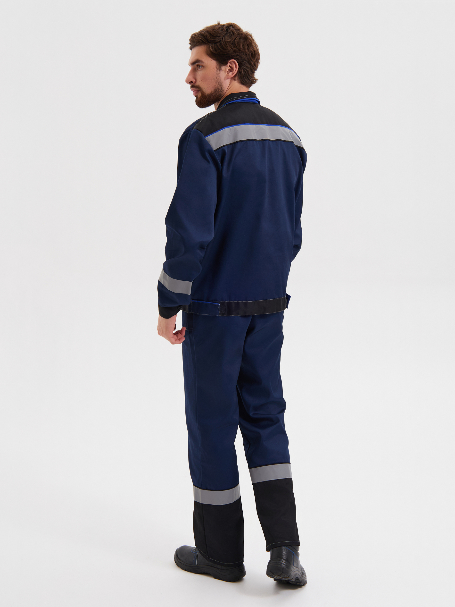 Куртка на притачном поясе с центральной бортовой застёжкой на тесьму-молнию с ветрозащитным клапаном, отложным воротником. На куртке имеются два нагрудных накладных кармана с клапанами и два нижних накладных кармана с наклонным входом. Световозвращающая полоса по низу кокеток полочек, на спине, вкруговую по нижней части рукава и по нижней части полукомбинезона, шириной 50 мм. Полукомбинезон с притачным нагрудником с поясом, высокой спинкой, бретелями с эластичной тесьмой, пристегивающимися на застежку-трезубец, боковой застежкой, центральной застежкой-гульфик. Нагрудник полукомбинезона с накладным карманом с клапаном на липучке.