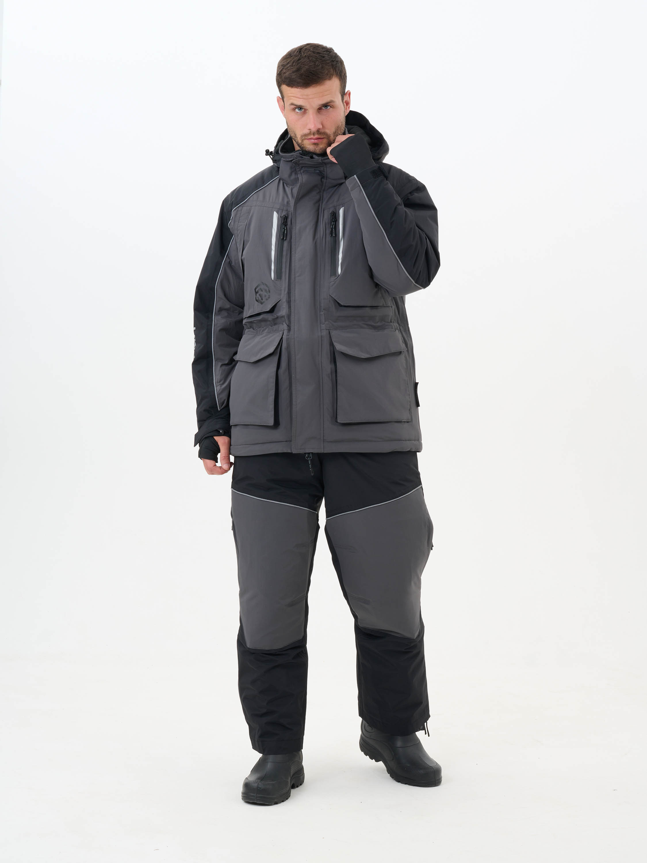 Ткань верха: Таслан 10000/10000. Состав: 100% нейлон. Подкладка: Флис / Таффета. Состав: 100% полиэстер. Износостойкая ткань Таслан - долговечный, устойчивый к истиранию и многократным изгибам мембранная ткань нового поколения с высокими показателями паропроницаемости и водостойкости (10000/10000). Сочетает в себе теплоизолирующие, ветро- и влагоустойчивые показатели и прочность наружного слоя. Внешняя поверхность блокирует ветер, а внутренний слой ткани защищает от избыточной влаги. Solid Pro -45 ПК предназначен для зимней рыбалки, поездок на снегоходе, а так же работы в самых холодных погодных условиях. Костюм включает в себя только самые необходимые функции для безопасной рыбалки в зимний период. Полукомбинезон исключает продувания в ветренную погоду. На куртке имеется большое кол-во карманов для размещения всех необходимых принадлежностей, что повышает его функциональность при занятиях любимым увлечением. Светоотражающие элементы сделают Ваше занятие более безопасным. Съемные подтяжки.