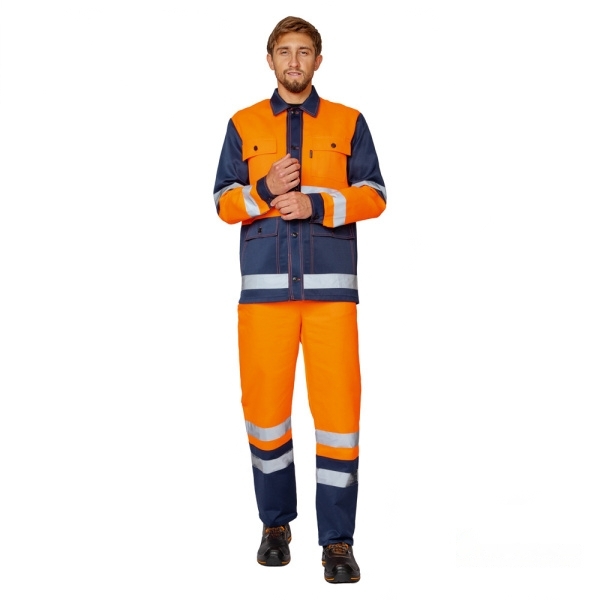 Карманы. Куртка: верхние и нижние накладные карманы с клапанами, застегивающимися на пуговицы. Полукомбинезон: на нагруднике накладной карман с клапаном, застегивающимся на пуговицу; боковые накладные карманы с наклонной линией входа; два кармана на задних половинках.