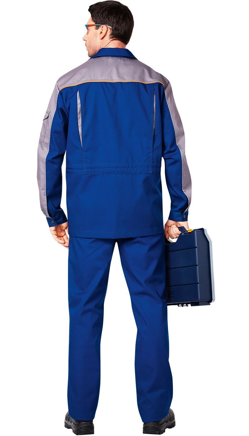 Костюм состоит из куртки и брюк.