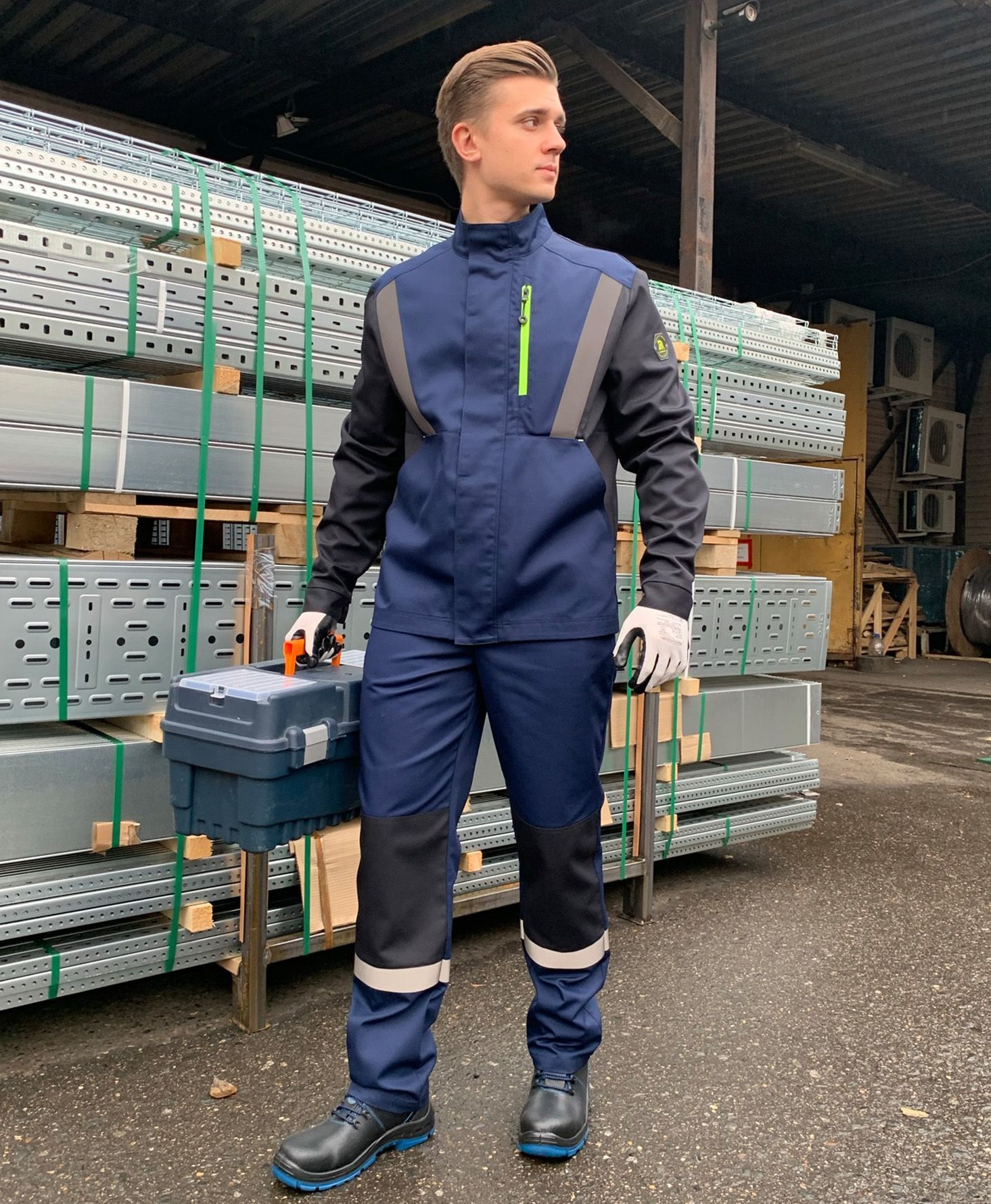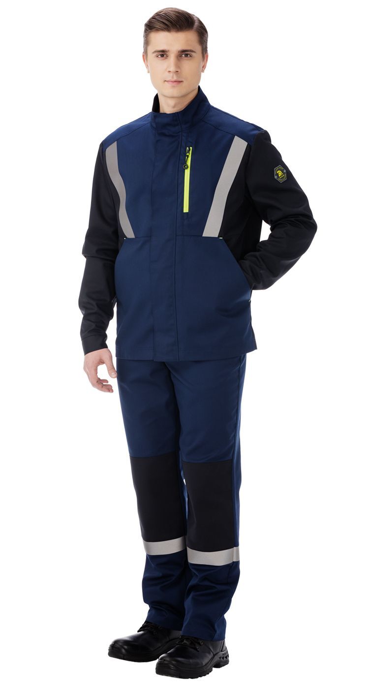 В верхней части куртки и по низу брюк расположены световозвращающие термотрансферные полосы LOXY графитового цвета для обеспечения безопасности в условиях плохой видимости.
