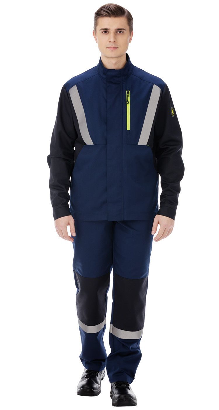 Костюм состоит из куртки и брюк.