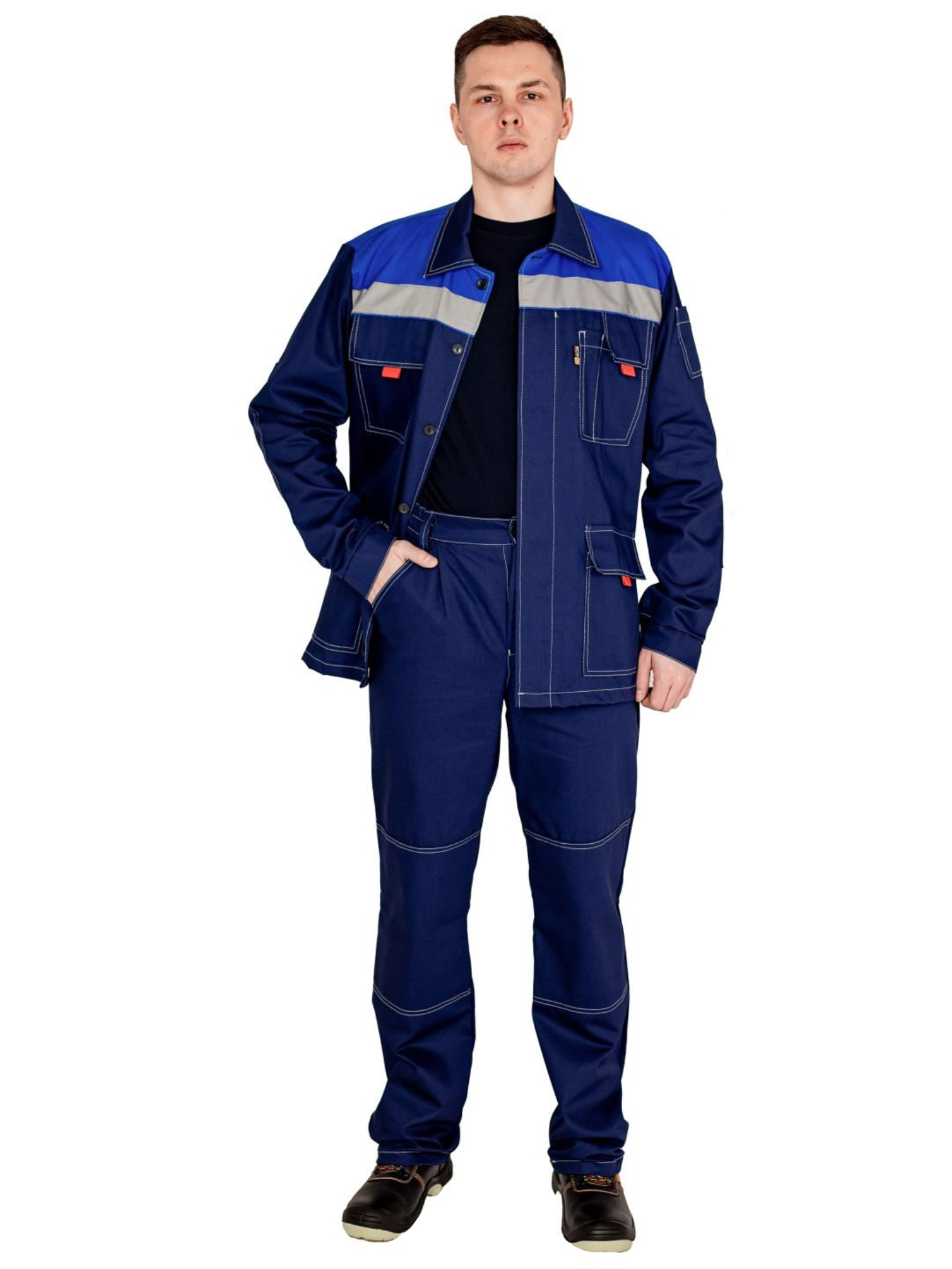 карманы ,наколенники отстрочены двойной отделочной строчкой