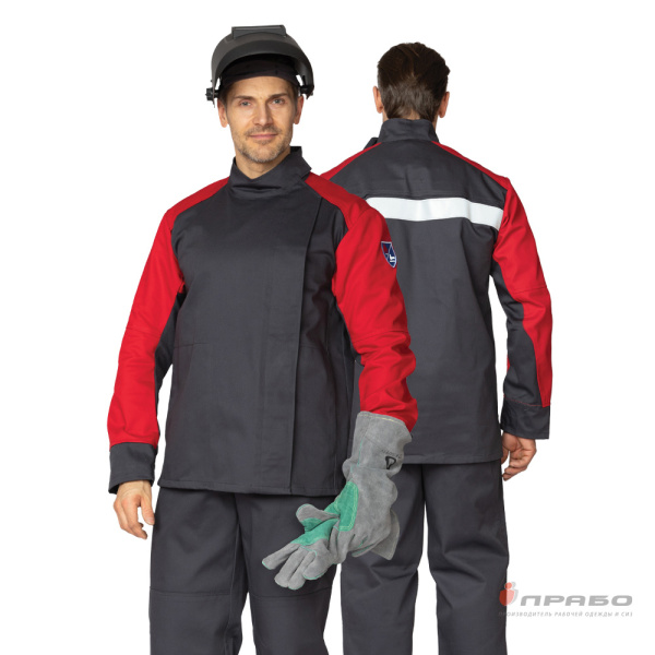 Куртка: прямого силуэта, со смещённой влево потайной застёжкой на пуговицы с уловителями пуговиц, с удлинённой спинкой, боковыми разрезами в швах. Воротник-стойка с фиксацией на контактную ленту. Напульсники анатомической формы из огнестойкой ткани, расположенные по низу рукава, обеспечивают дополнительную защиту от попадания искр. Анатомическая конструкция рукава. Смещённые плечевые швы в сторону полочек обеспечивают свободу движения. Вентиляционные отверстия на кокетке спинки и под проймой.