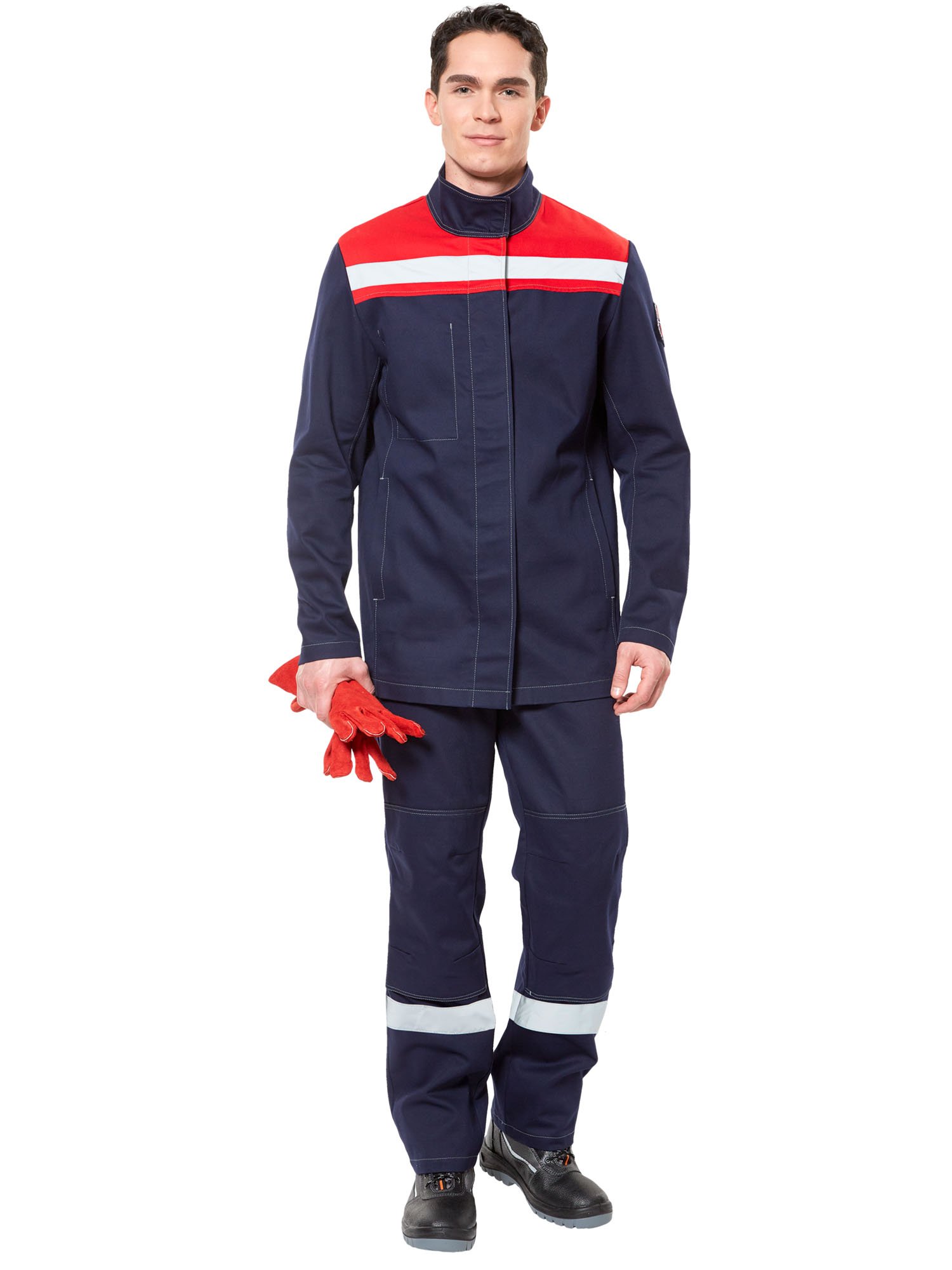 Костюм 1 класса защиты, предназначен для эксплуатации на расстоянии до источника брызг металла, окалины не менее 2 м, в том числе: при обслуживании автоматических сварочных линий, аппаратов (устройств), при работах, связанных с механическим резанием металла. Материал: Флеймшилд 340 (3111-ПРОБАН), 340 г/м.кв