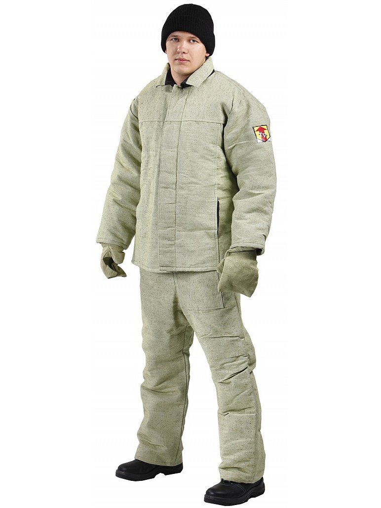 Костюм утеплен притачной утепляющей подкладкой и обладает защитными свойствами: защита от искр, брызг расплавленного металла, окалины.