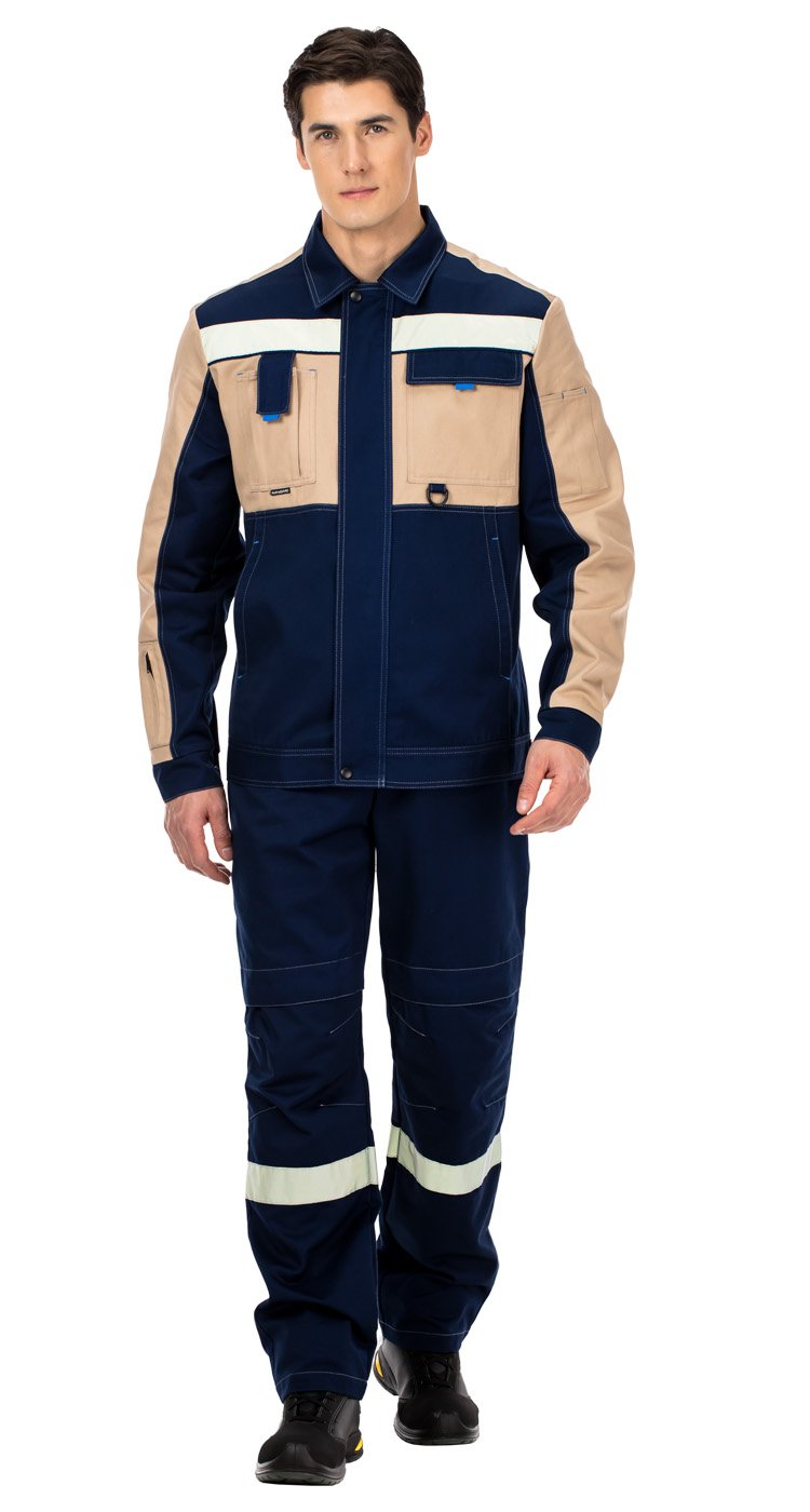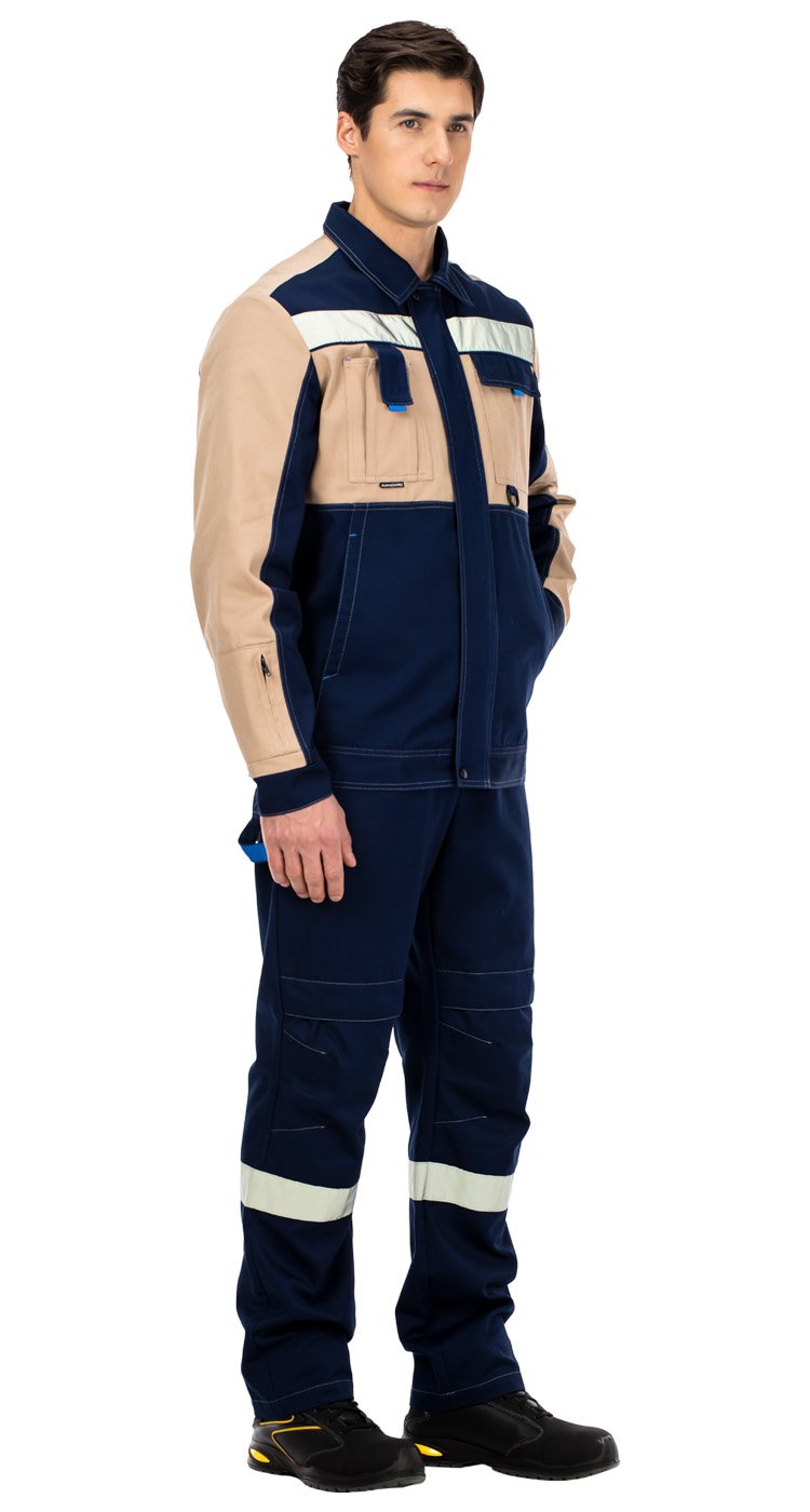 По низу кокеток куртки и по низу полукомбинезона расположены широкие световозвращающие полосы для безопасной работы в условиях плохой видимости.