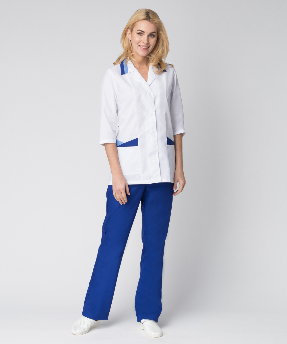 - контрастными голубыми и синими вставками отделаны карманы и воротник
