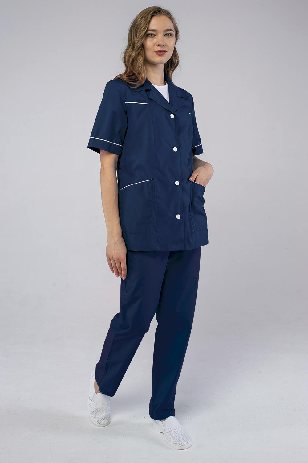 - контрастным белым кантом отделаны кокетка, карманы и манжеты