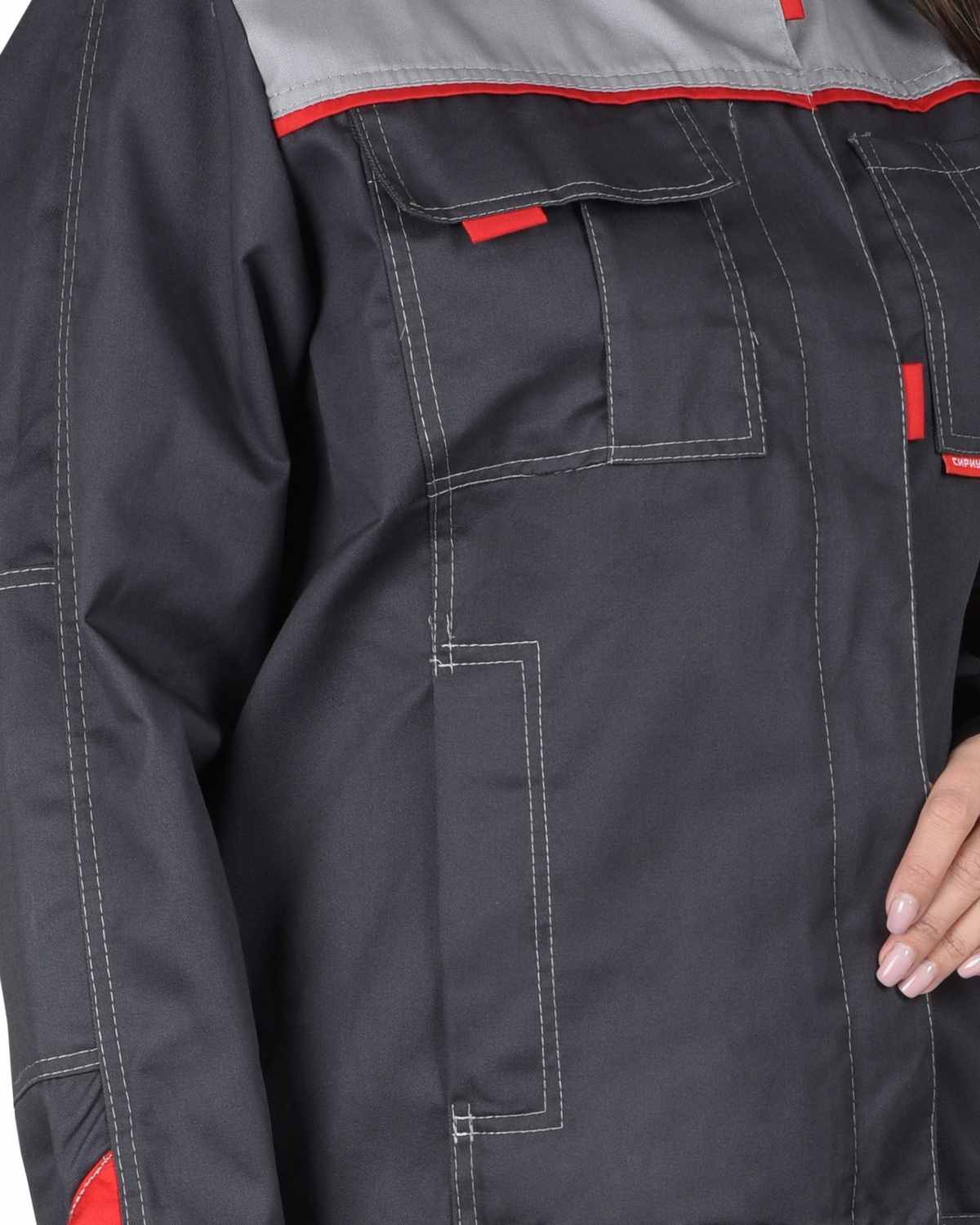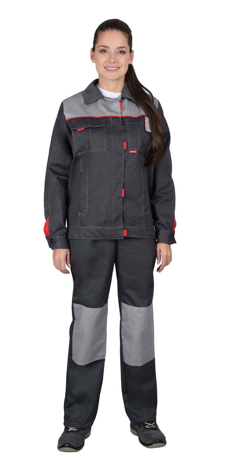 Костюм женский "Сириус-Фаворит" брюки (т.серый/с.серый/красный)