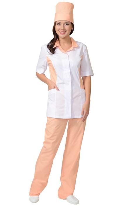 Костюм состоит из блузы, брюк и колпака. Куртка с застёжкой на пуговицы, короткими рукавами. Брюки, колпак, воротник и бочки куртки из отделочной ткани.