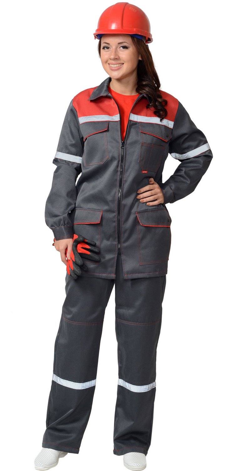 Костюм женский "Сириус-Механик" брюки (серый/красный)