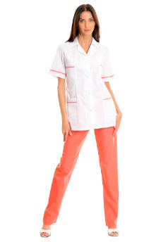 Блуза: полуприлегающий силуэт, воротник отложной, рукава короткие, 2 нагрудных и 2 нижних кармана.