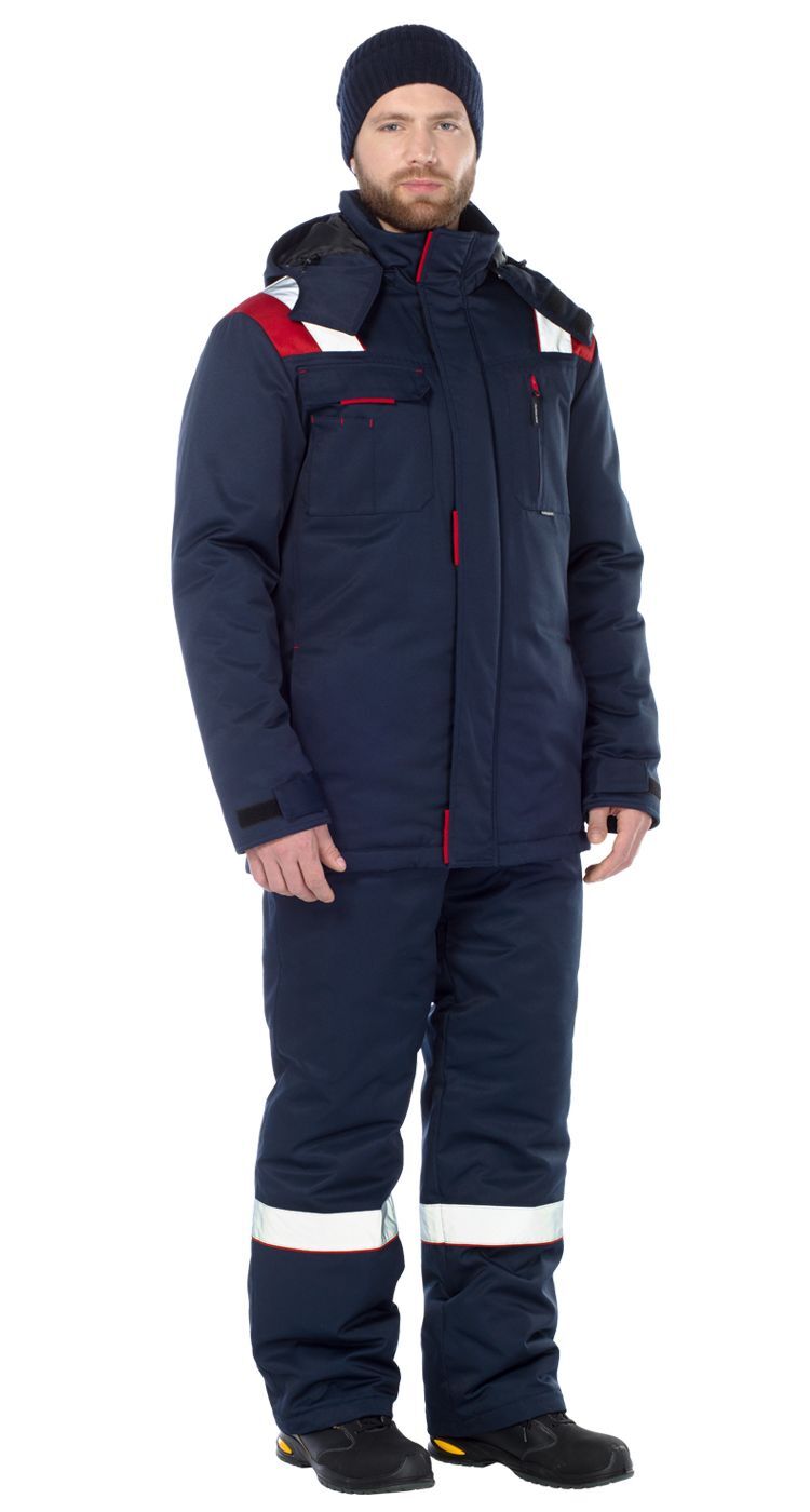 Костюм мужской утепленный, состоит из куртки и полукомбинезона.